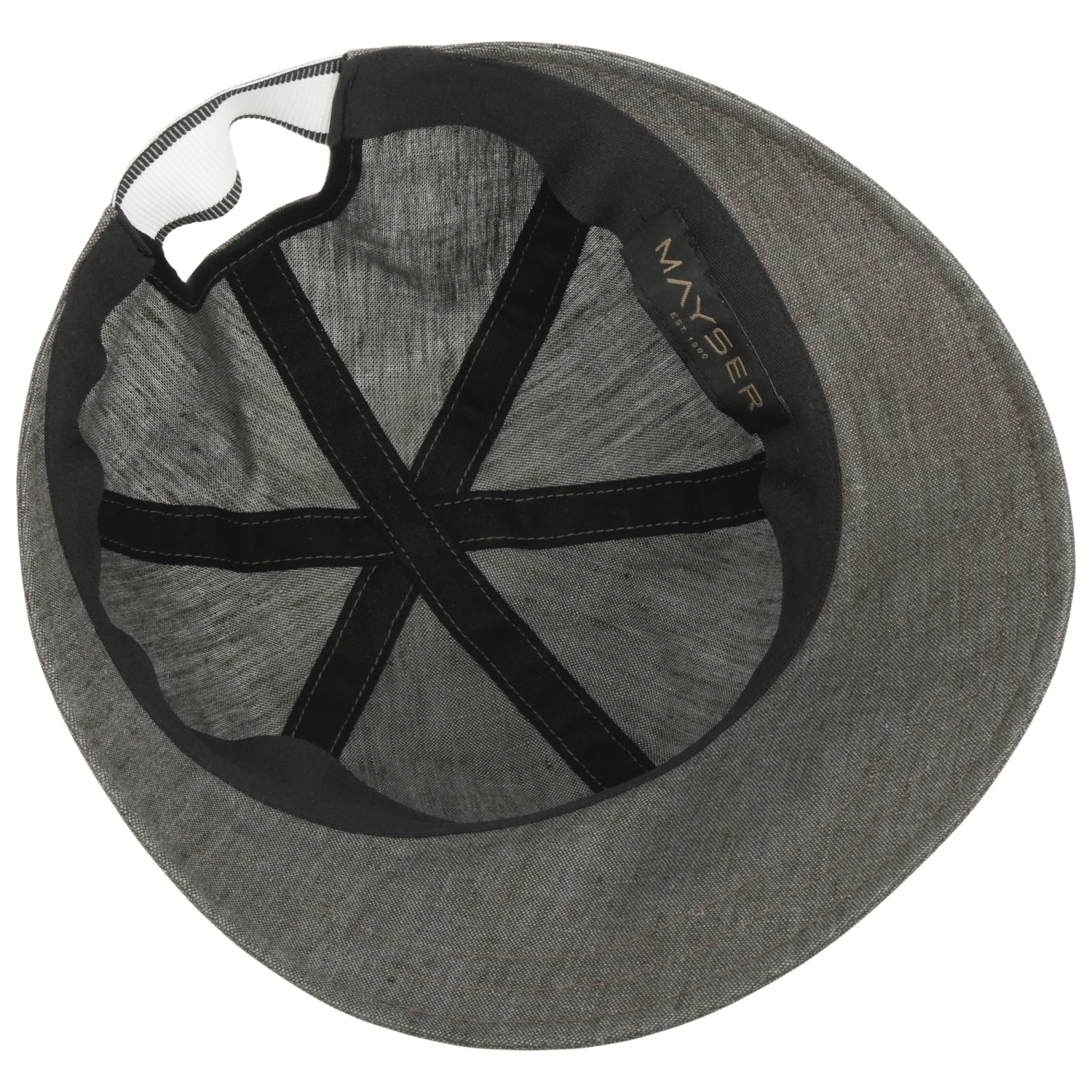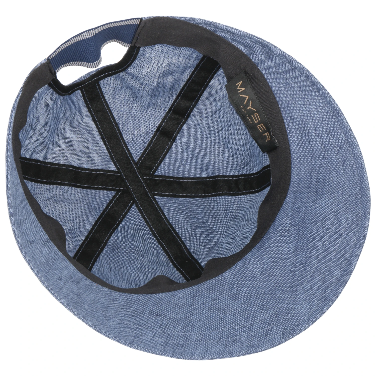 Das große Visor schützt das Gesicht vor blendenden Sonnenstrahlen und verleiht der Kappe zugleich eine sportive Anmutung. Ein hinten eingearbeitetes, elastisches Gummiband sorgt dafür, dass sich die von Hand gefertigte Stoffcap optimal der Kopfform anpasst.
