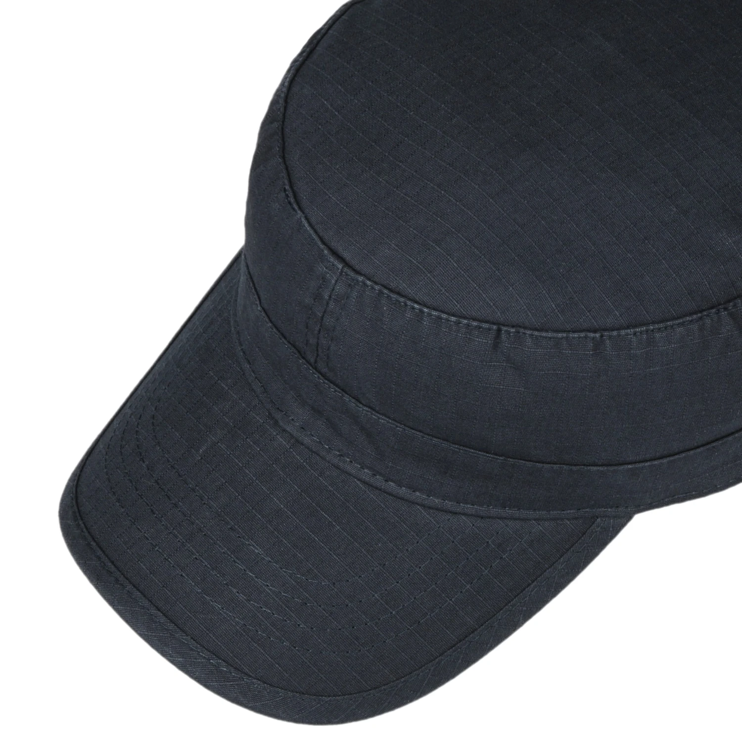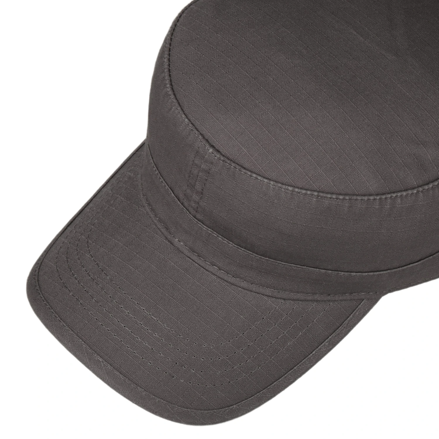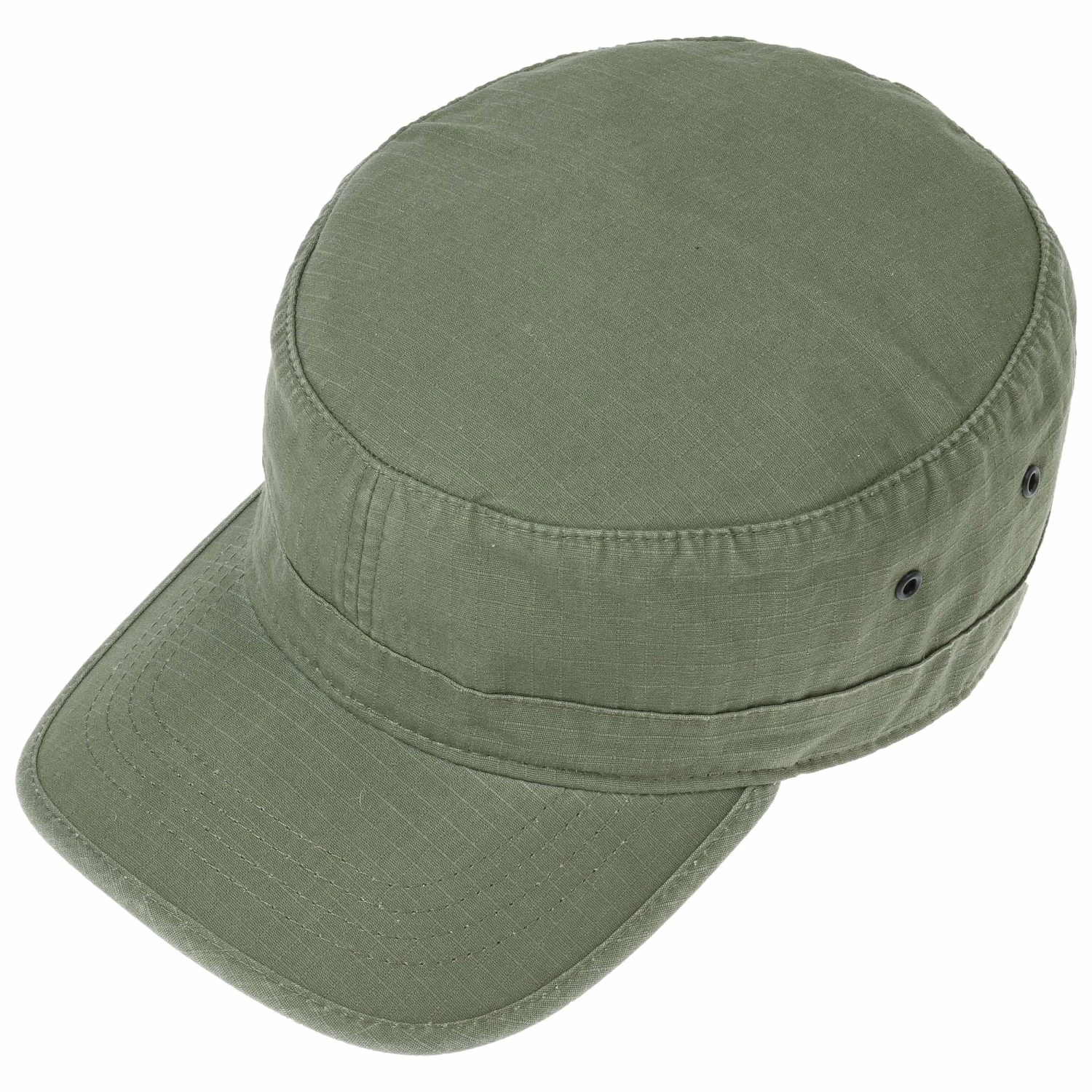 Die leichte Armycap aus 100% Baumwolle zeigt mit ihrer quadratischen Oberflächenstruktur einen typischen Military-Style.