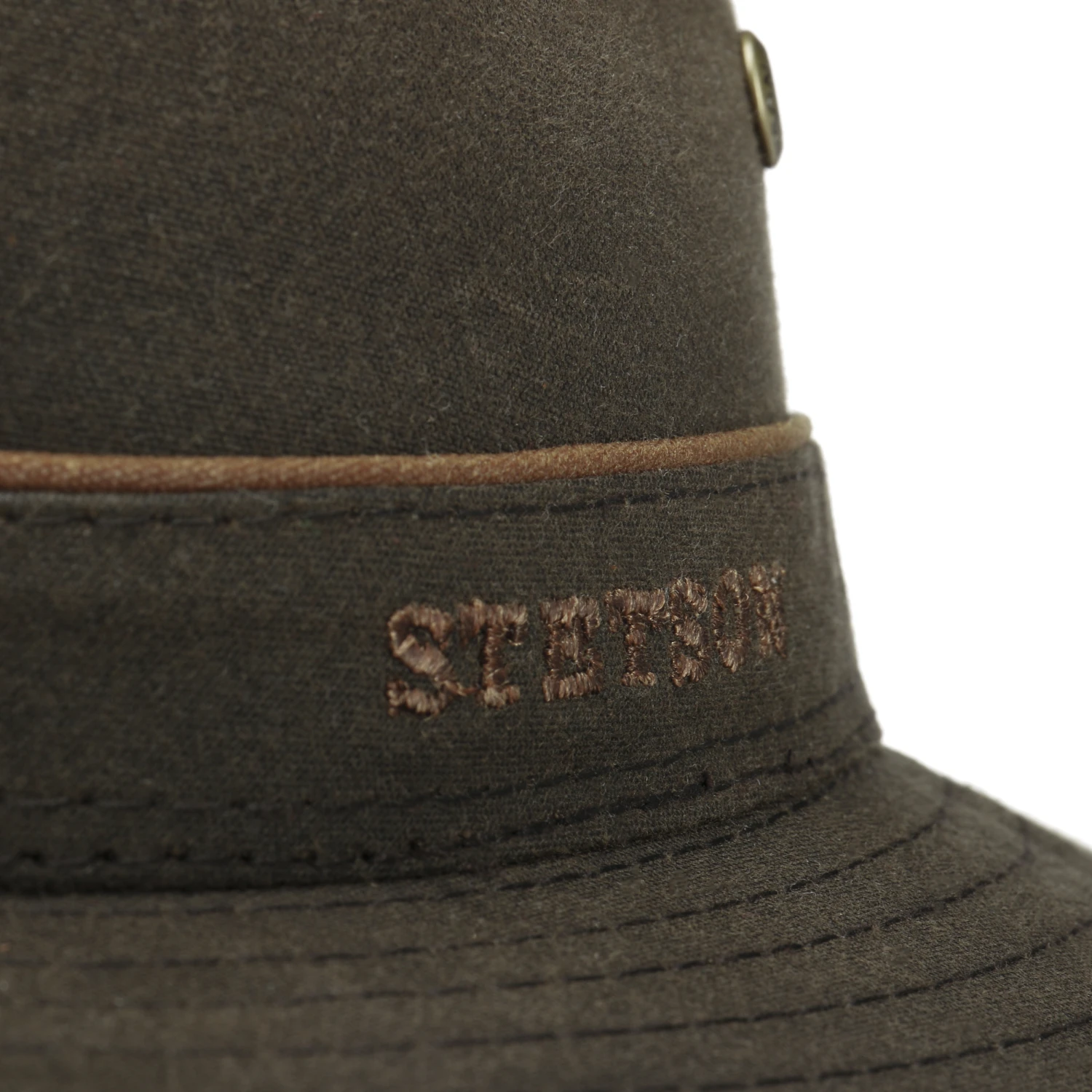 Mit gewachster Baumwolle und seitlichen Luftösen zeigt der Stoffhut von Stetson seine Outdoortauglichkeit.