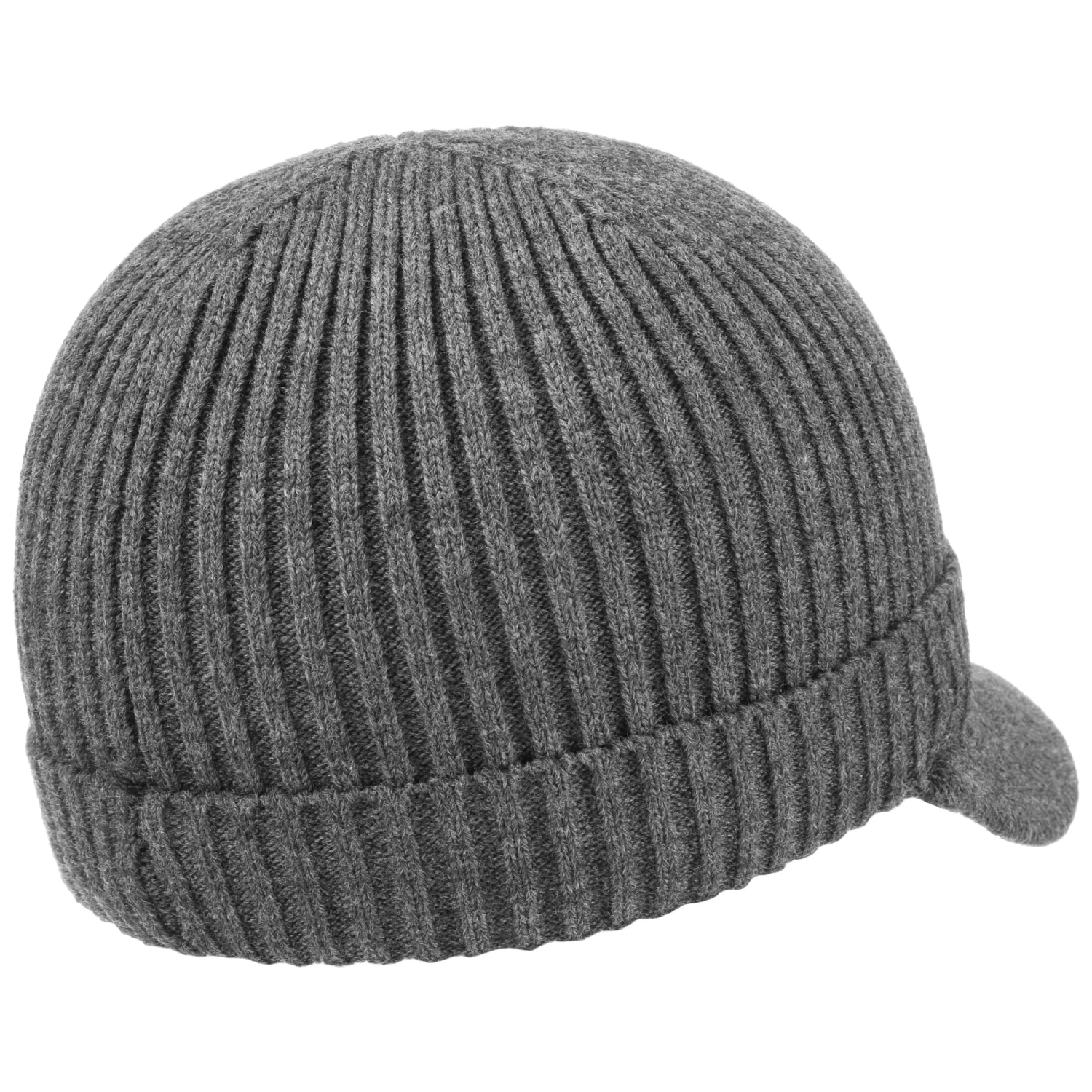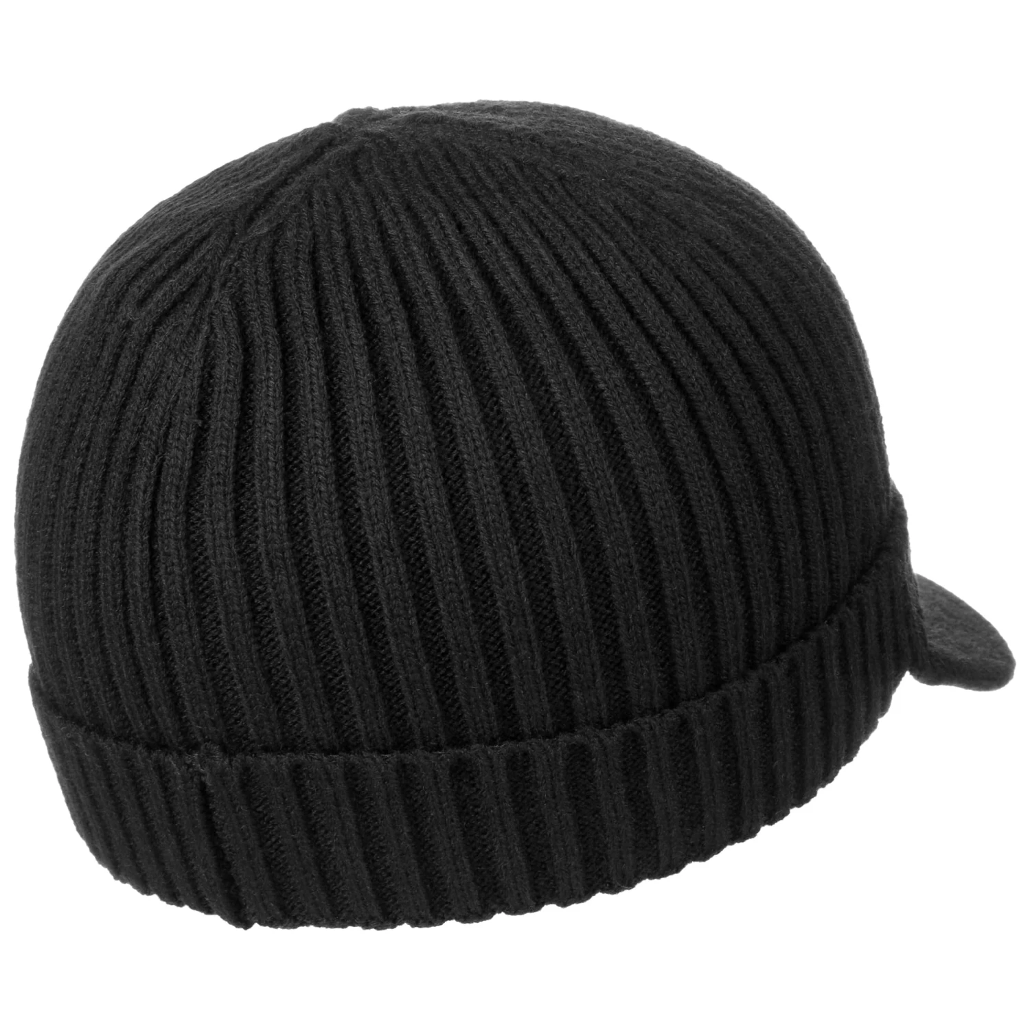 Eine Besonderheit des einfarbig gehaltenen Designs ist der sportive gewölbte Schirm, der am breiten Umschlag der wärmenden Kopfbedeckung angesetzt ist. Unterschiedliche Strickmuster setzen die einzelnen Teile definiert in Szene.