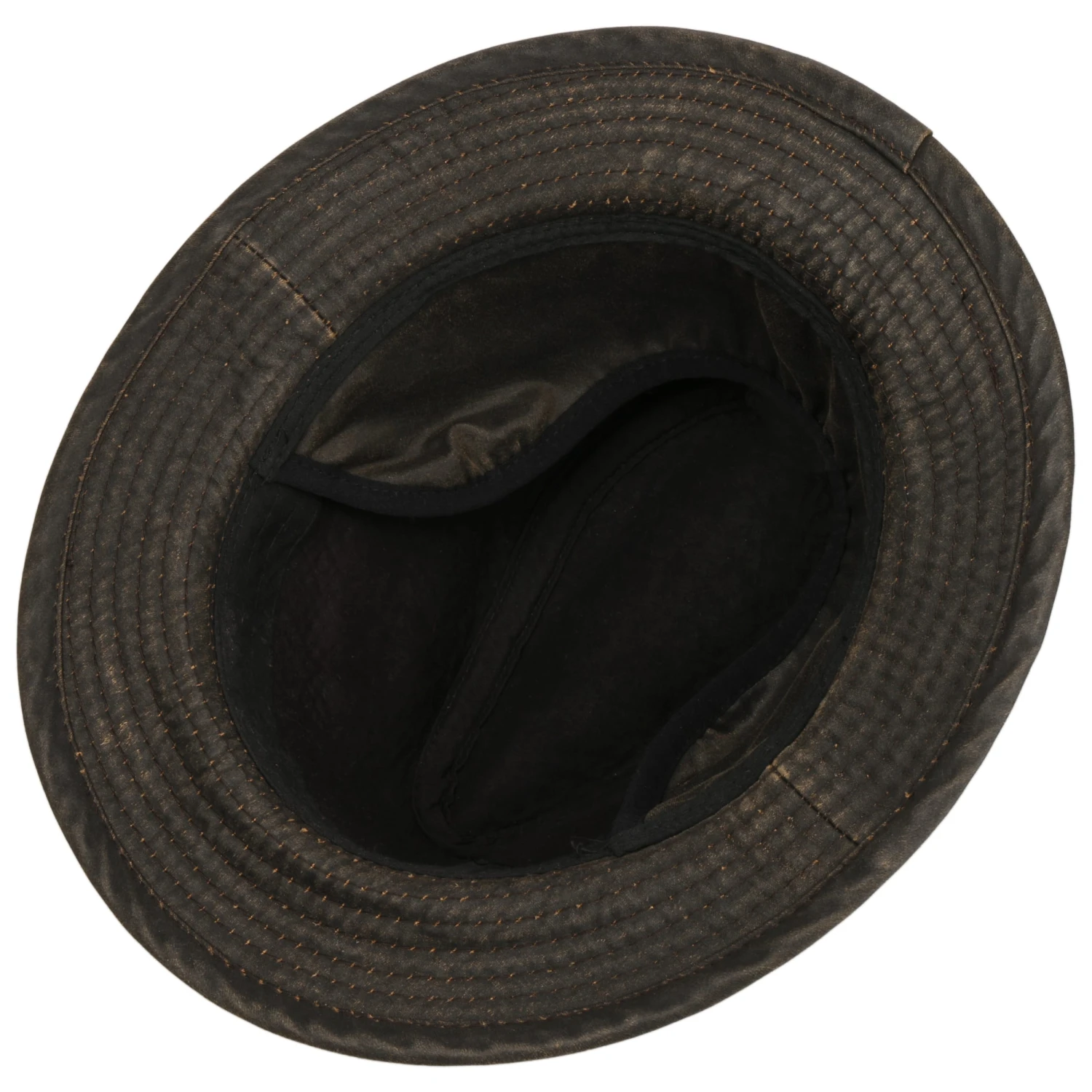 Eine Baumwollmischung in unifarbenem, leicht meliertem Design verleiht dem Traveller von Stetson den angesagt abgegriffenen Look, der zeigt: Der Stoffhut ist bereit für Unternehmungen.