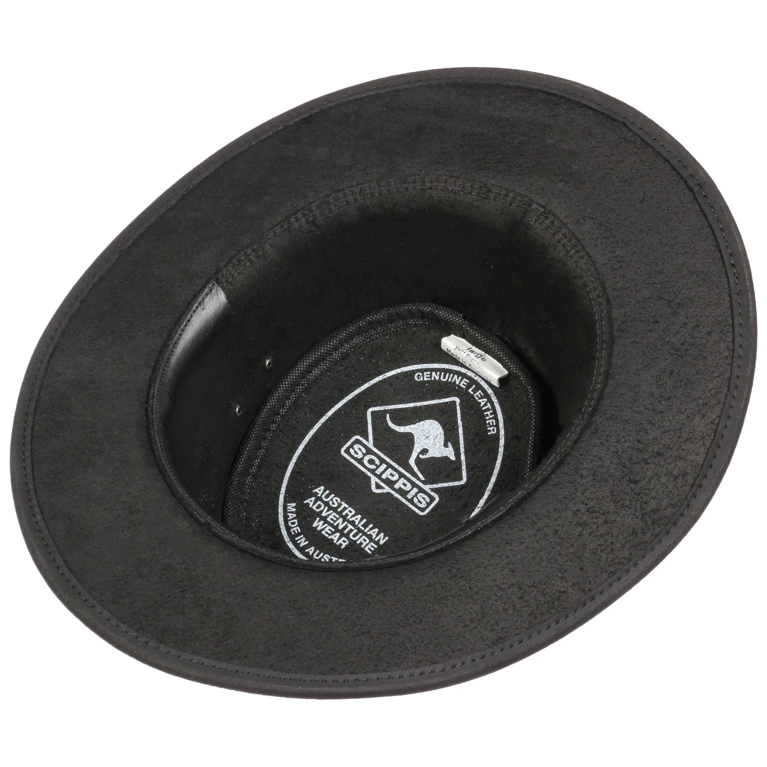 Als absolut robust und outdoortauglich erweist sich dieser Rindslederhut von Scippis mit geflochtenem Garniturband.
