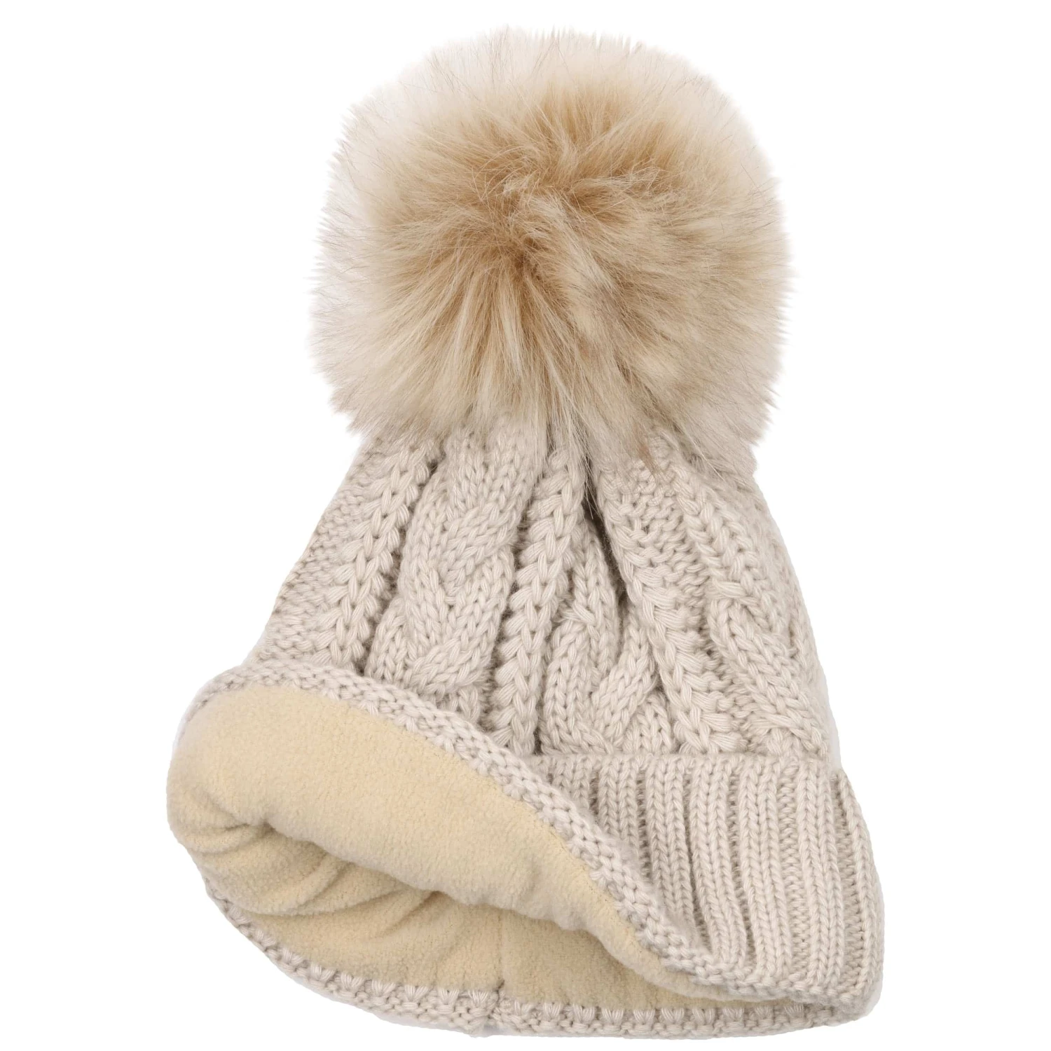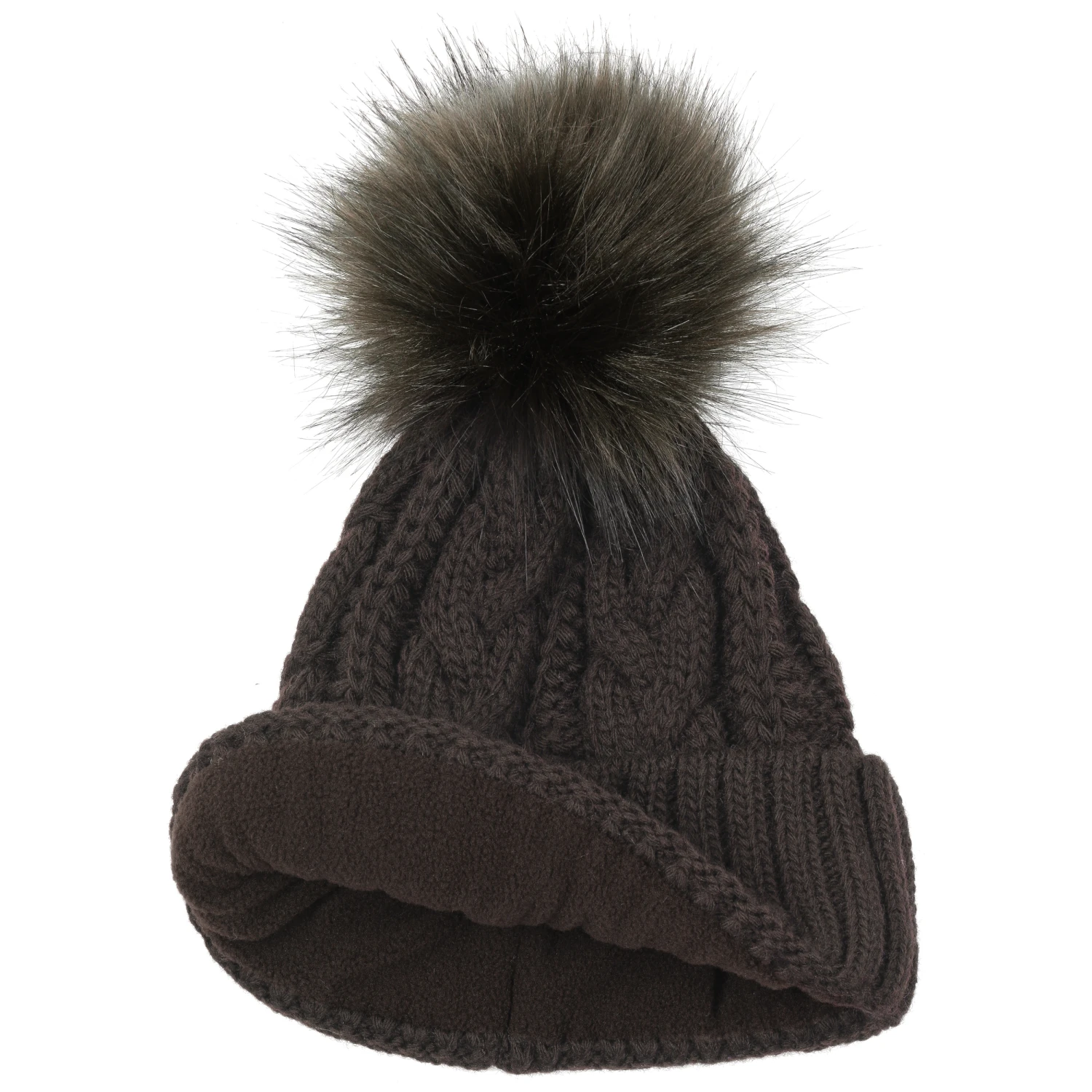 Unifarben und mit einem Anteil wärmender Wolle ausgestattet lädt die Umschlagmütze ein, den Kopf im Winter gemütlich einzukuscheln. Auch optisch strahlt die Strickmütze mit dem griffigen Zopfmuster und krönendem, ultraflauschigem Pompon Behaglichkeit aus. Stofffutter ergänzt den anschmiegsamen Komfort.