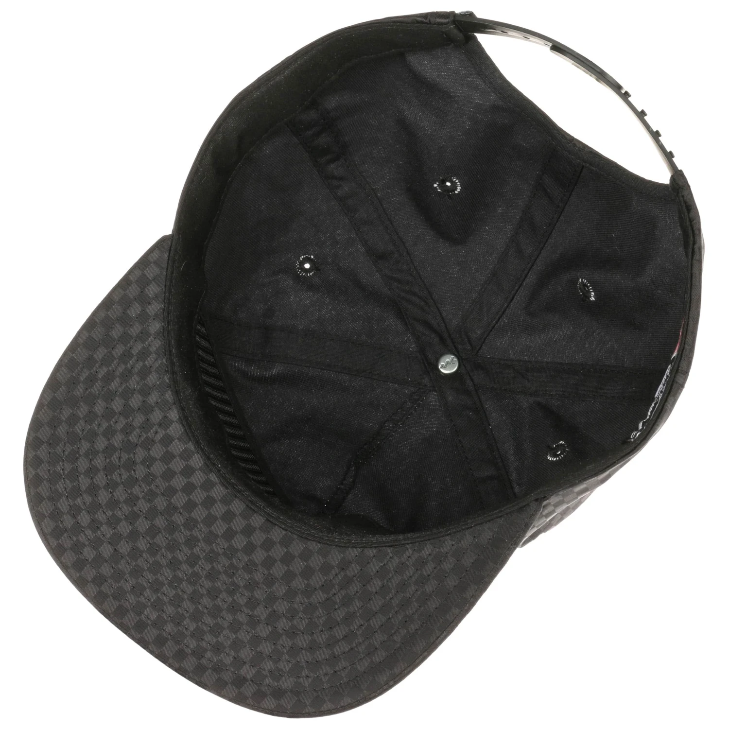 Unifarben mit angedeuteten Karos, aus einer leichten, schnell trocknenden Baumwollmischung gefertigt und am Hinterkopf größenverstellbar ist die Stoffcap bei jedem Freizeitabenteuer dabei. Ein Blickfang ist die frontale, farbig schattierte Markenstickerei über dem geraden zielstrebigen Visor.