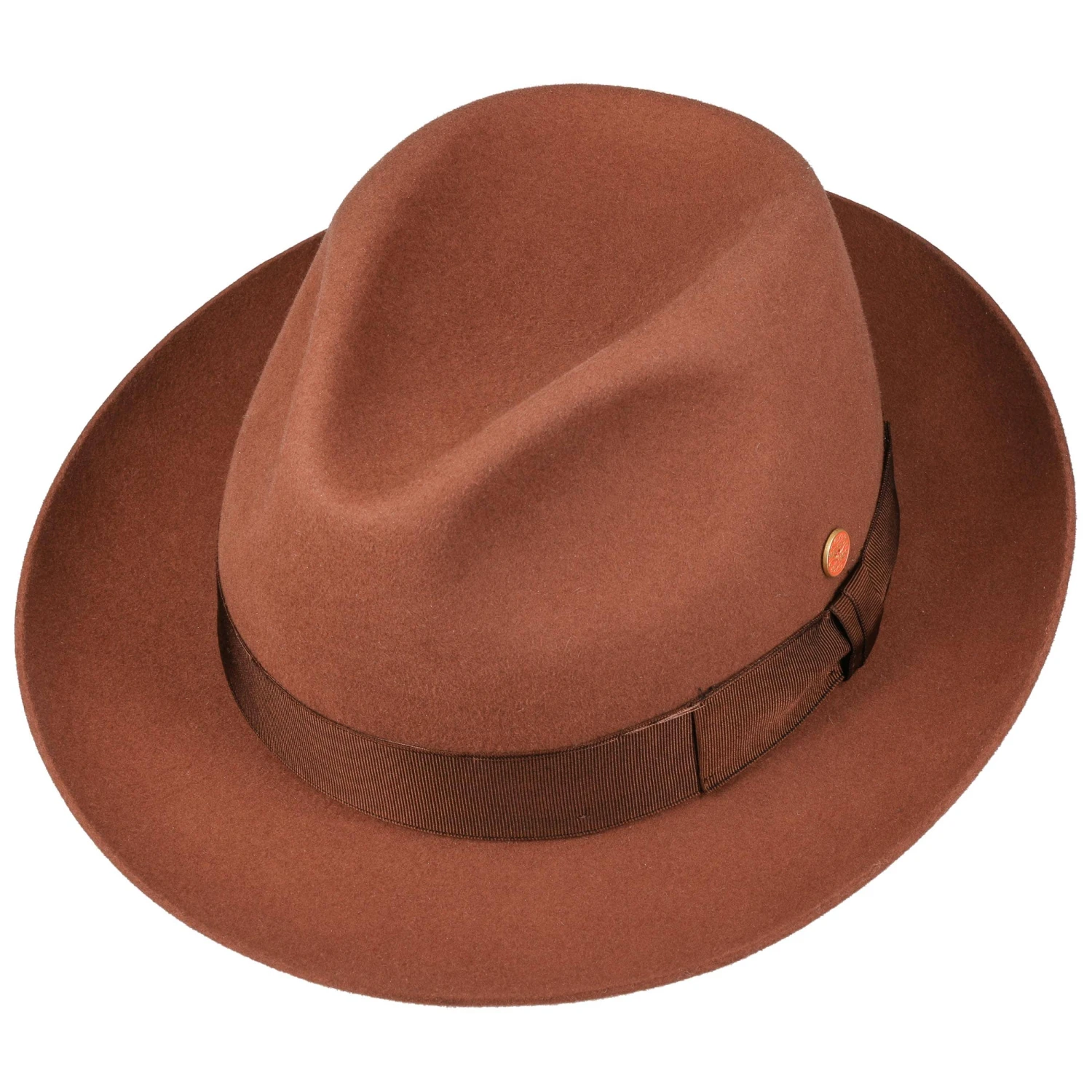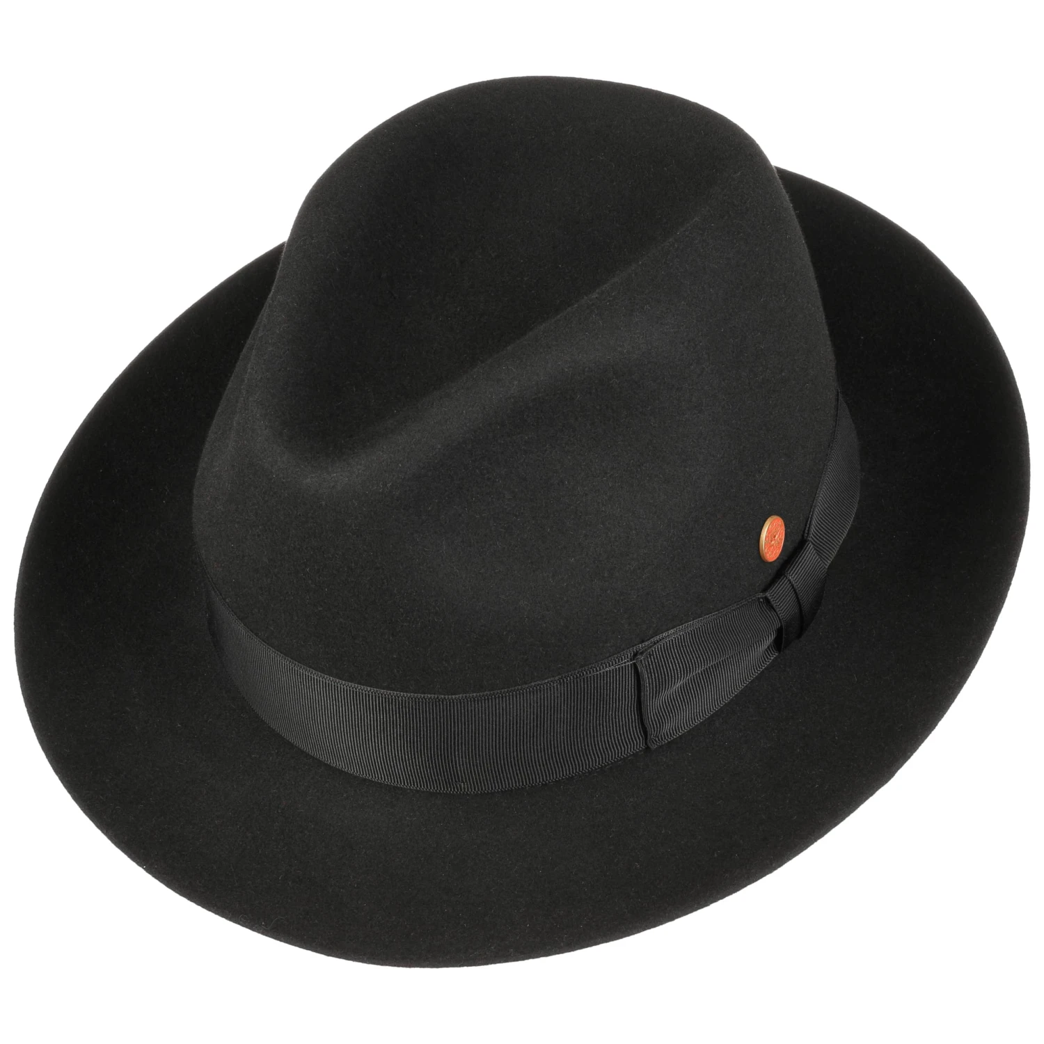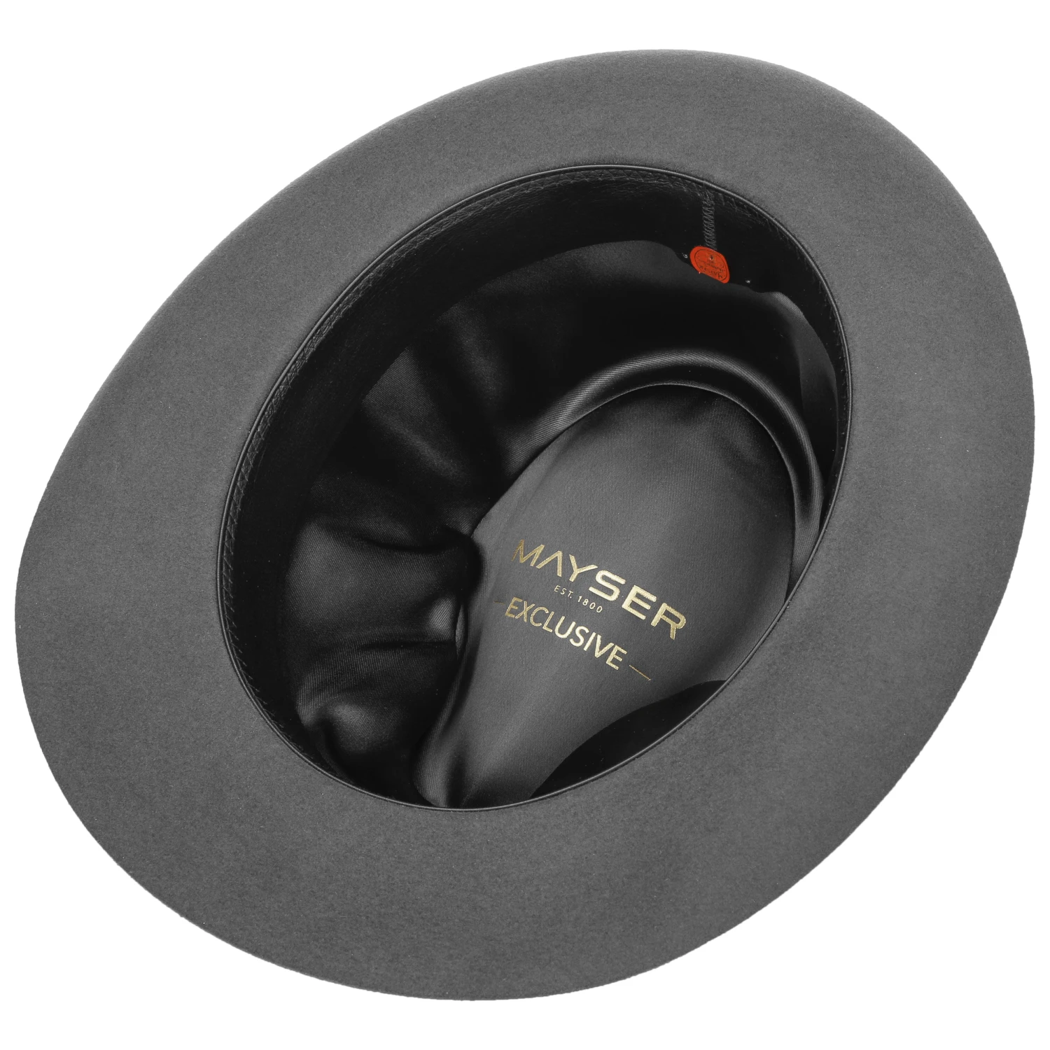 Nicht nur der typische Look mit tiefem Kniff, rückseitig geschwungener Krempe und apartem Ripsband sorgen für den charaktervollen Look. Auch das sorgfältig ausgearbeitete Material aus 100% Haarfilz trägt zur edlen Ausstrahlung des hochwertigen Fedora-Hutes bei.