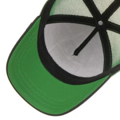 Mit gekreuzten Gewehren über dem Garniturband zeigt sich die Lederkappe authentisch und originell.