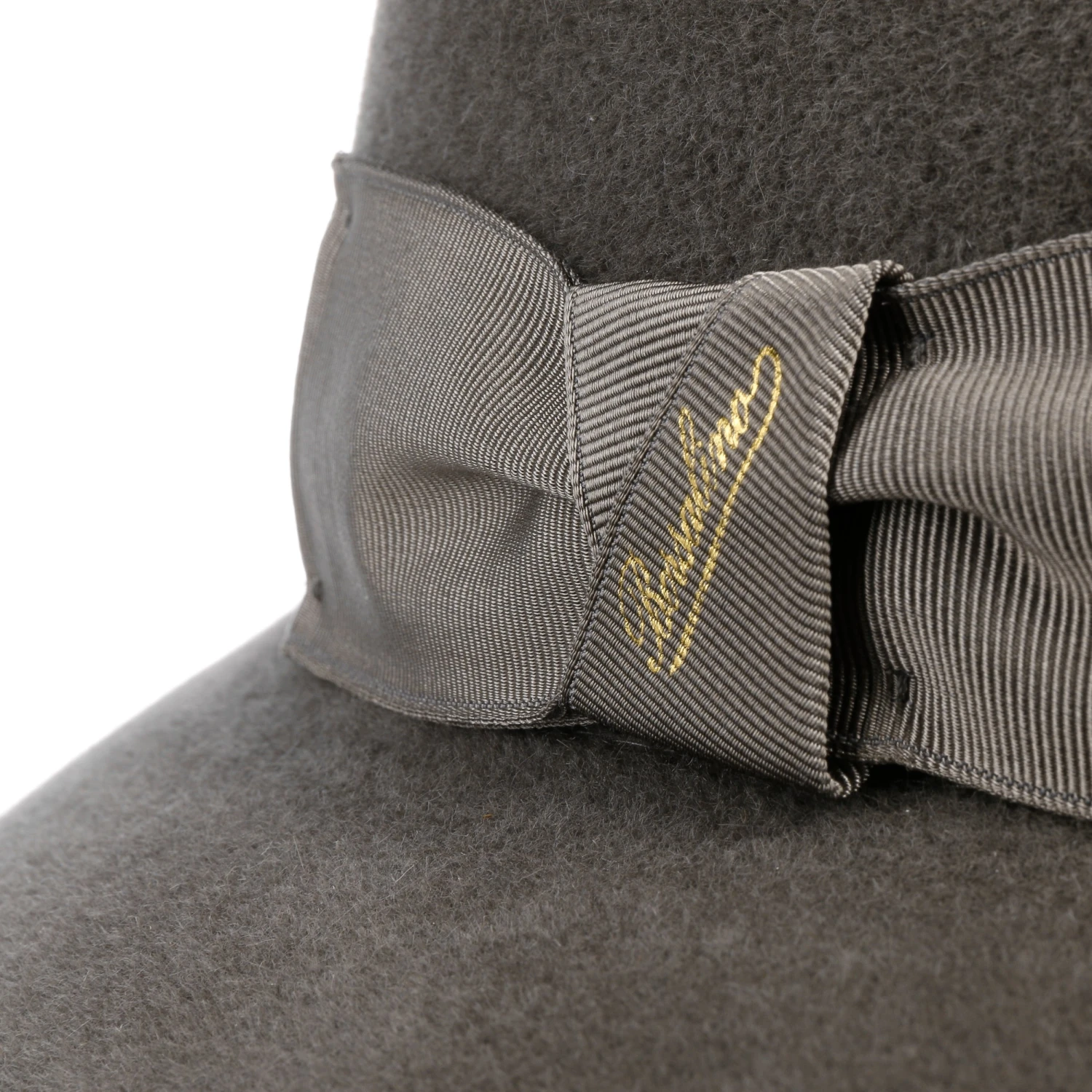 Ein Highlight des Designs ist das qualitativ hochwertige Material, aus dem die handgefertigte Kopfbedeckung gefertigt ist. Der feine Haarfilz wirkt wärmend und wasserabweisend, und sieht dabei äußerst geschmackvoll aus. Ein luxuriös schimmerndes Ripsband mit schicker Schleife rundet den adretten Look ab.