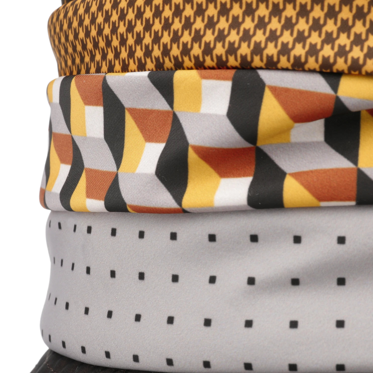 Seine wasserabweisende Oberfläche trotzt jedem Sommerregen. Die Schute präsentiert sich im modischen Patchwork-Design mit verschieden gemusterten Partien. Ihre Krempe bleibt dank stabilisierender Steppnähte perfekt in Form und schützt auch das Gesicht vor Regen.