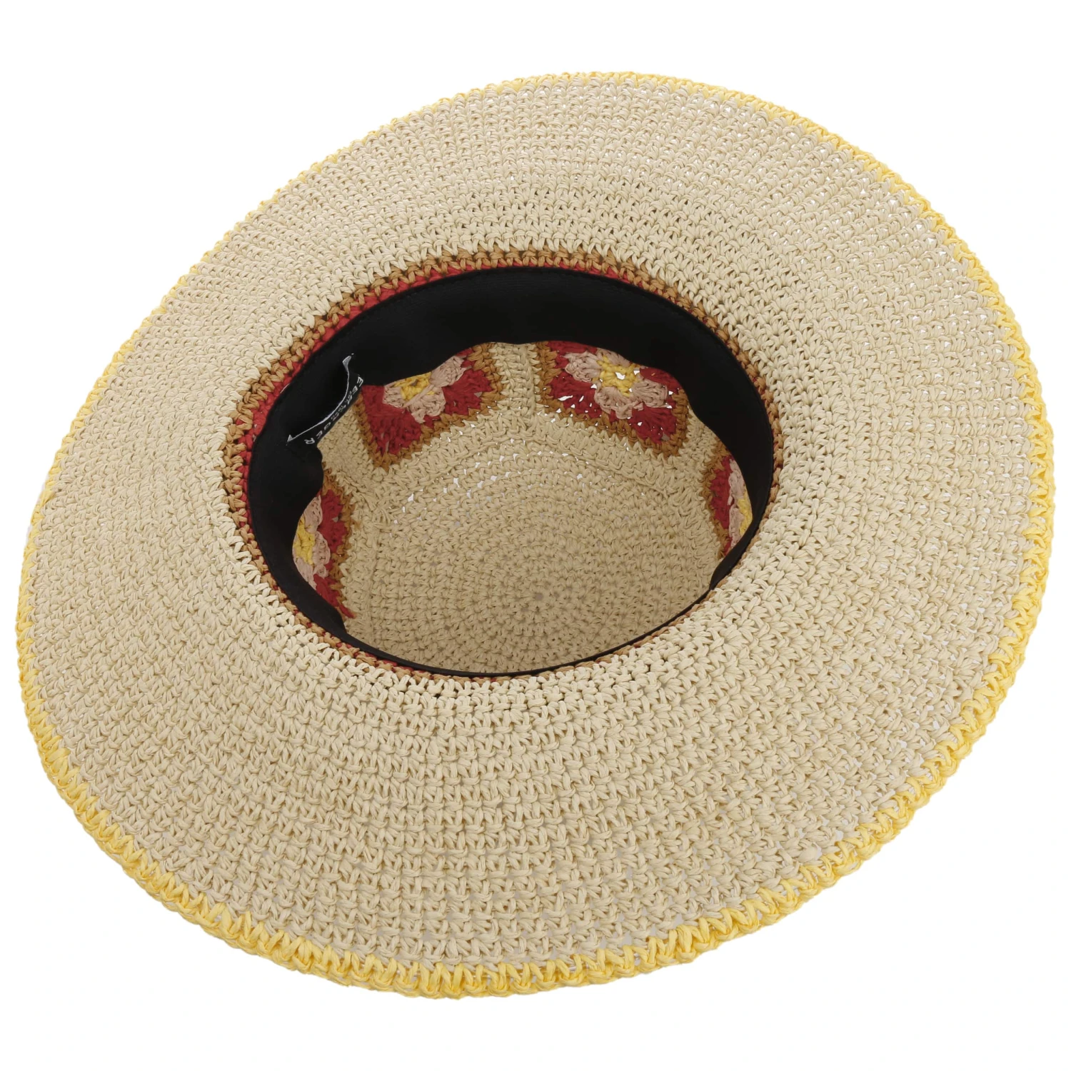 Erst recht, wenn sie – wie hier – in hübschen Farben daherkommt. Die süßen Blümchen auf der Krone bieten so ein charmantes Gegengewicht zu der ausladenden Krempe des Schlapphuts. Beim Material setzt die Hutmacherei Seeberger auf 100% feines Papierstroh: Das trägt sich leicht und angenehm und sorgt auch an heißen Tagen für eine gute Luftzirkulation.
