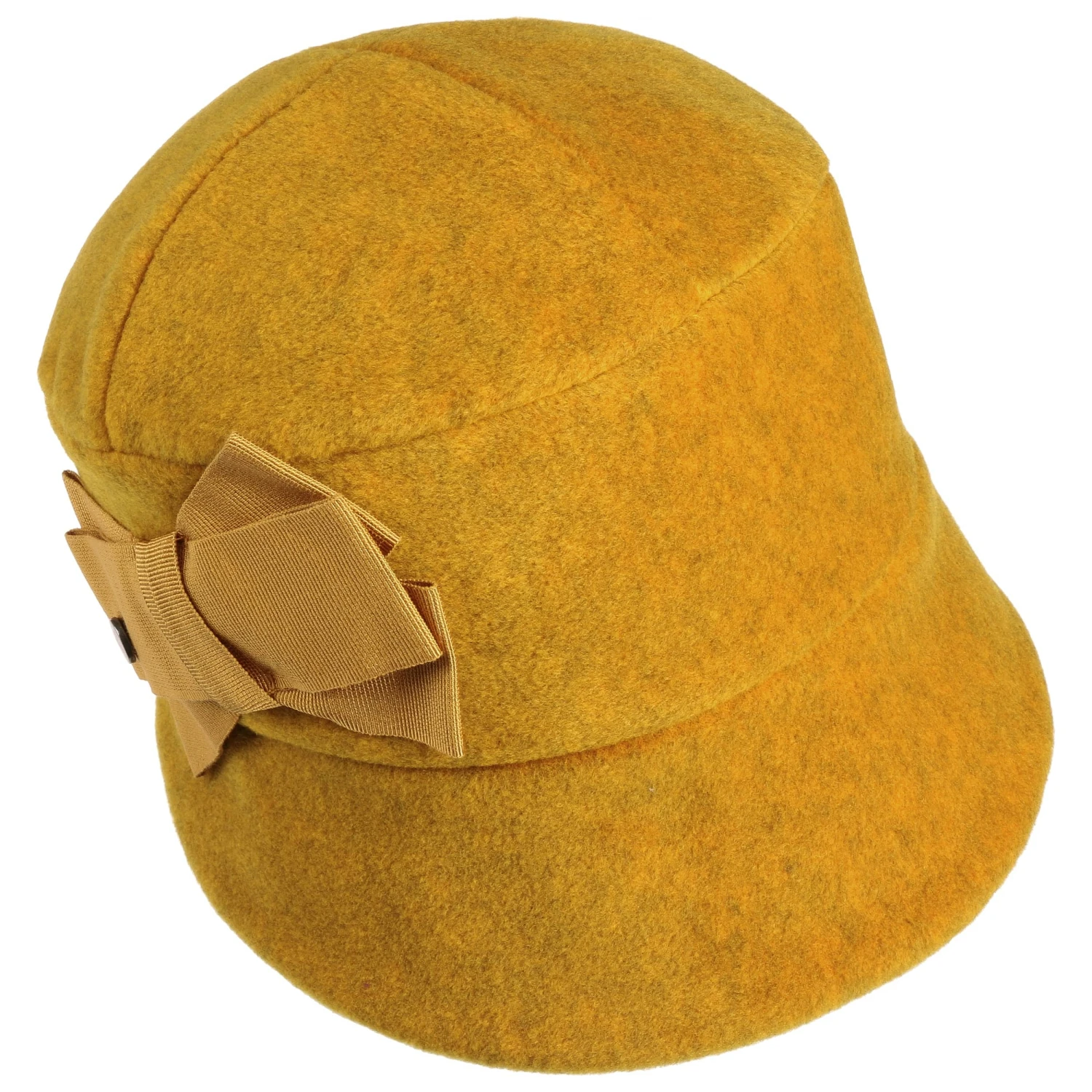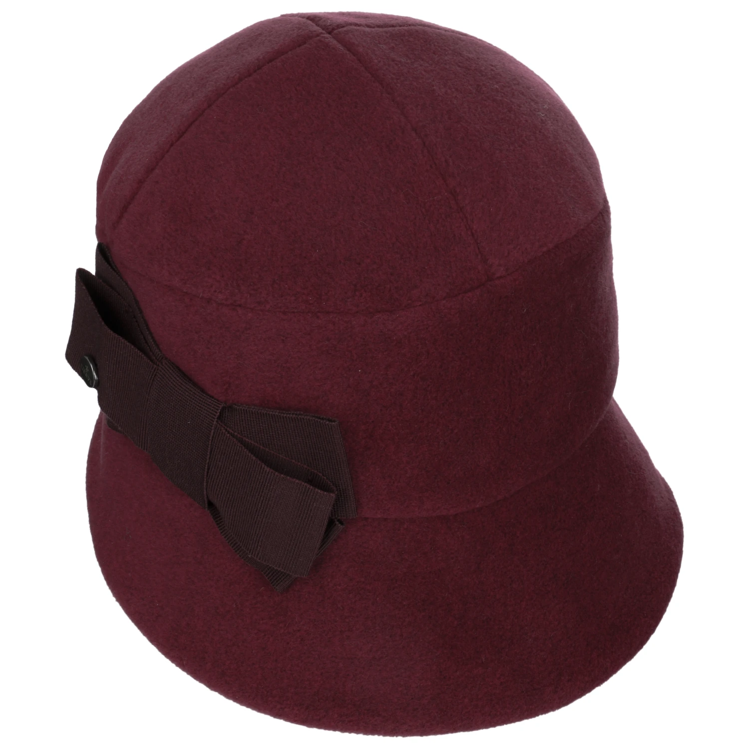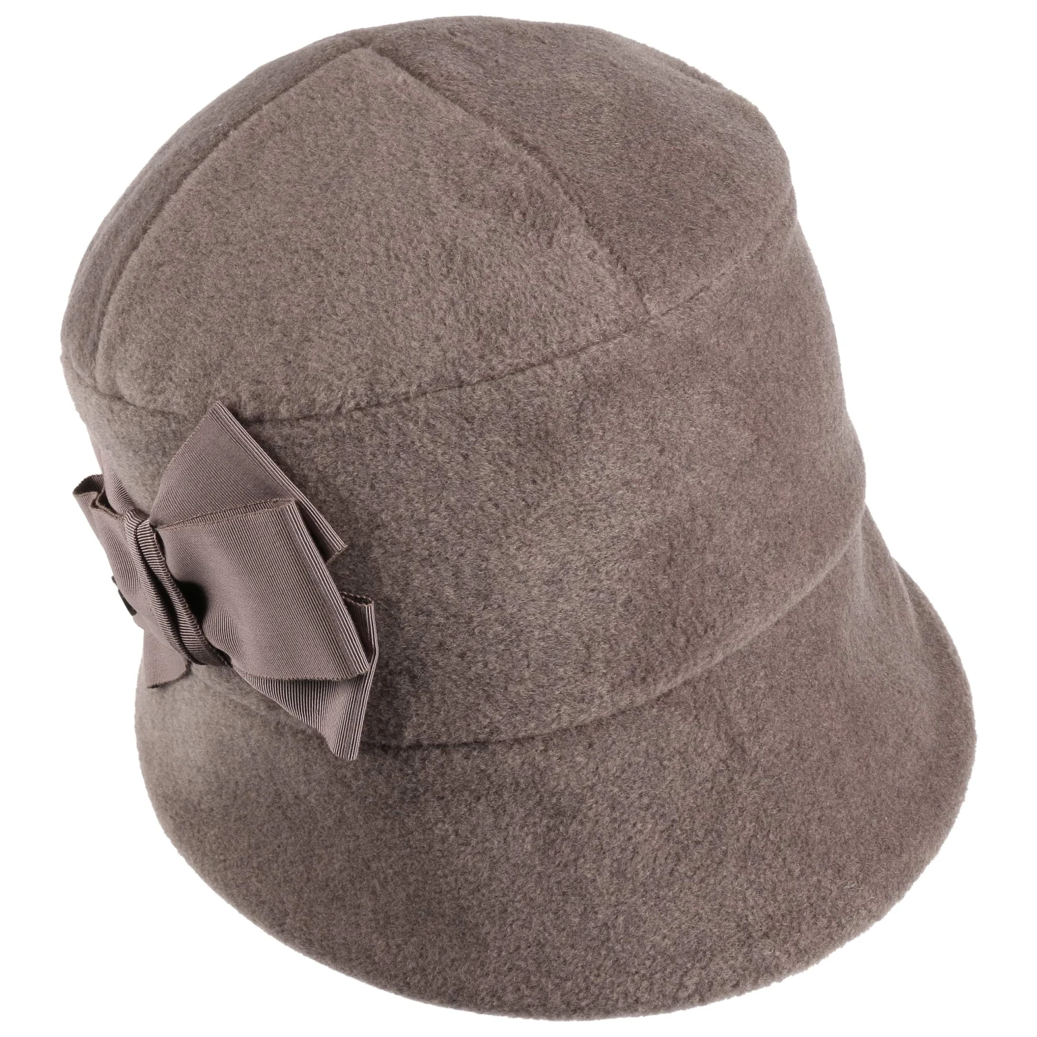 Die hochwertig verarbeitete Kopfbedeckung für Damen präsentiert sich mit einer für Glockenhüte typischen Krempe, die sich betont nach unten neigt. Als weiterer Blickfang erweist sich die große, farblich dezent abgesetzte Schleife, die auf der Seite des Damenhutes sitzt.