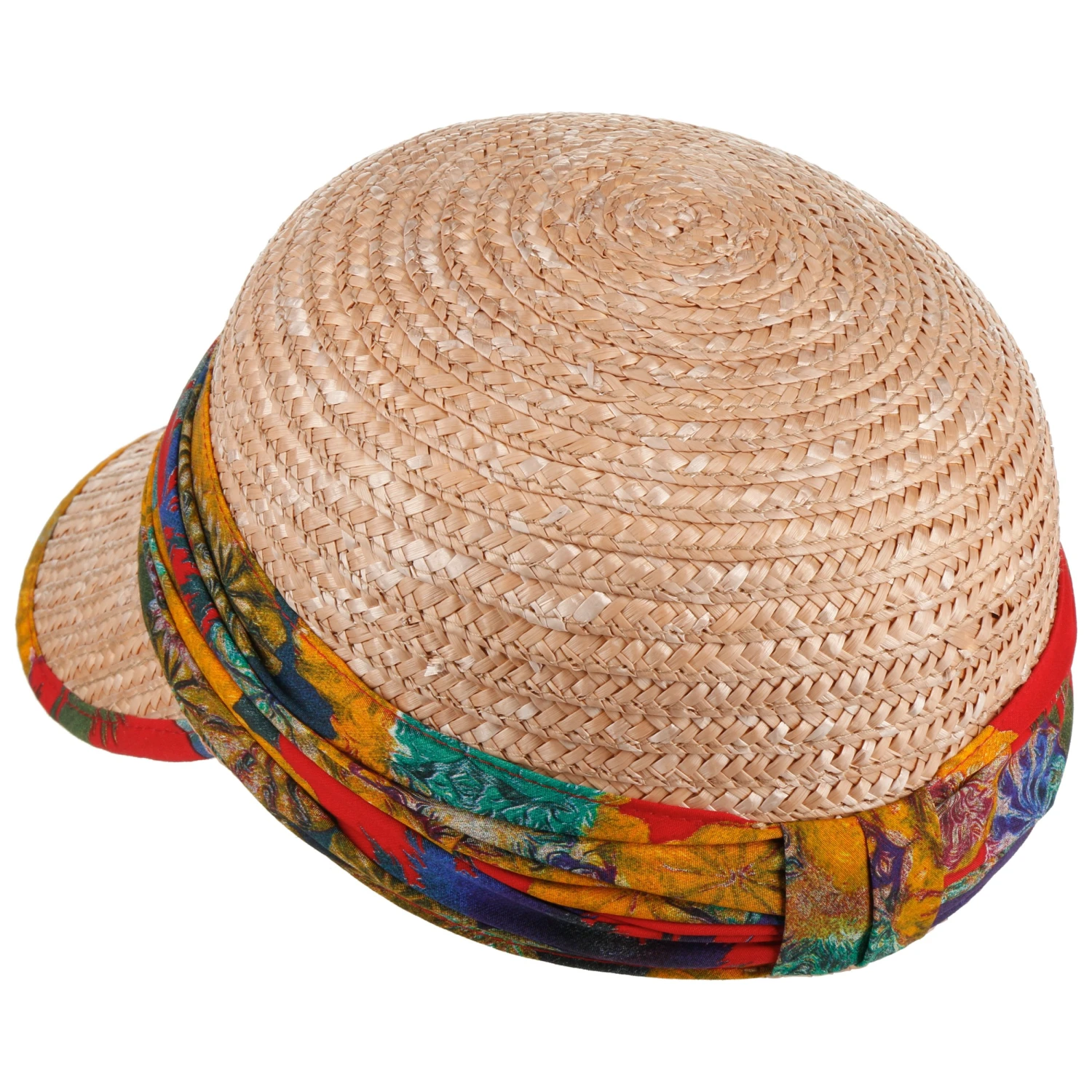 Zu diesem Zweck ist sie mit einem großen Visor ausgestattet, das wohltuenden Schatten über das Gesicht fallen lässt. Ihr sommerliches Design verdankt sie einem Stoffband mit fröhlichem Blumenmuster und einem darauf abgestimmten Paspeleinfass um den Schirm. Ein Stretchfutterband sorgt für bequemen Tragekomfort.