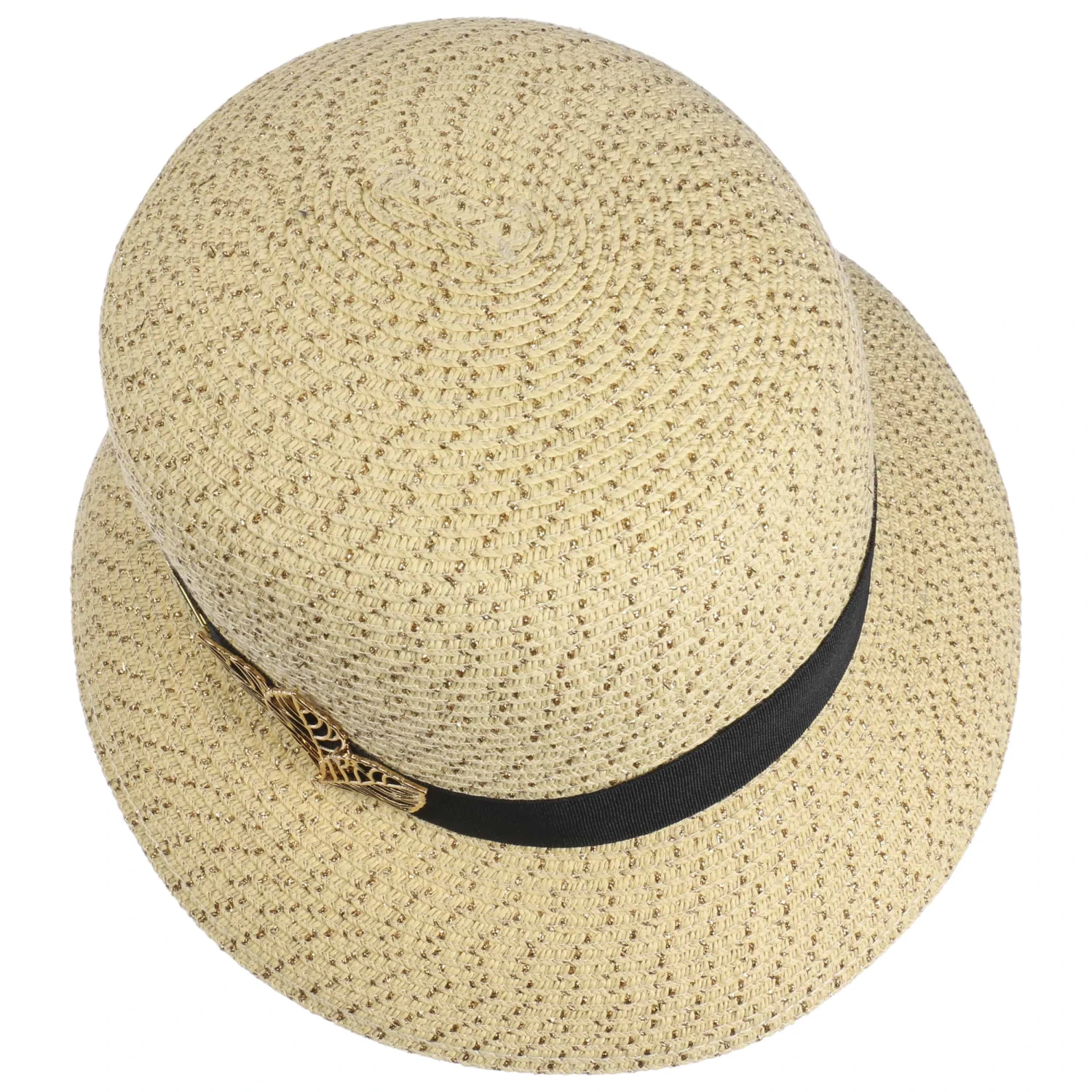 Mit seinen glanzvollen Akzenten wirkt der Strohhut von Betmar besonders edel und elegant.