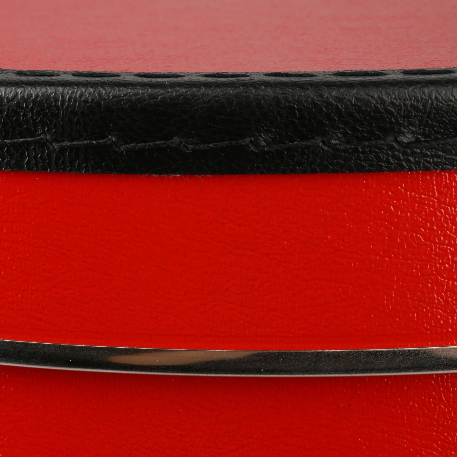 Dieser robuste Hutkoffer aus Kunstleder besticht durch ein leuchtendes Rot, welches elegant erstrahlt ob unterwegs oder daheim in der Garderobe.