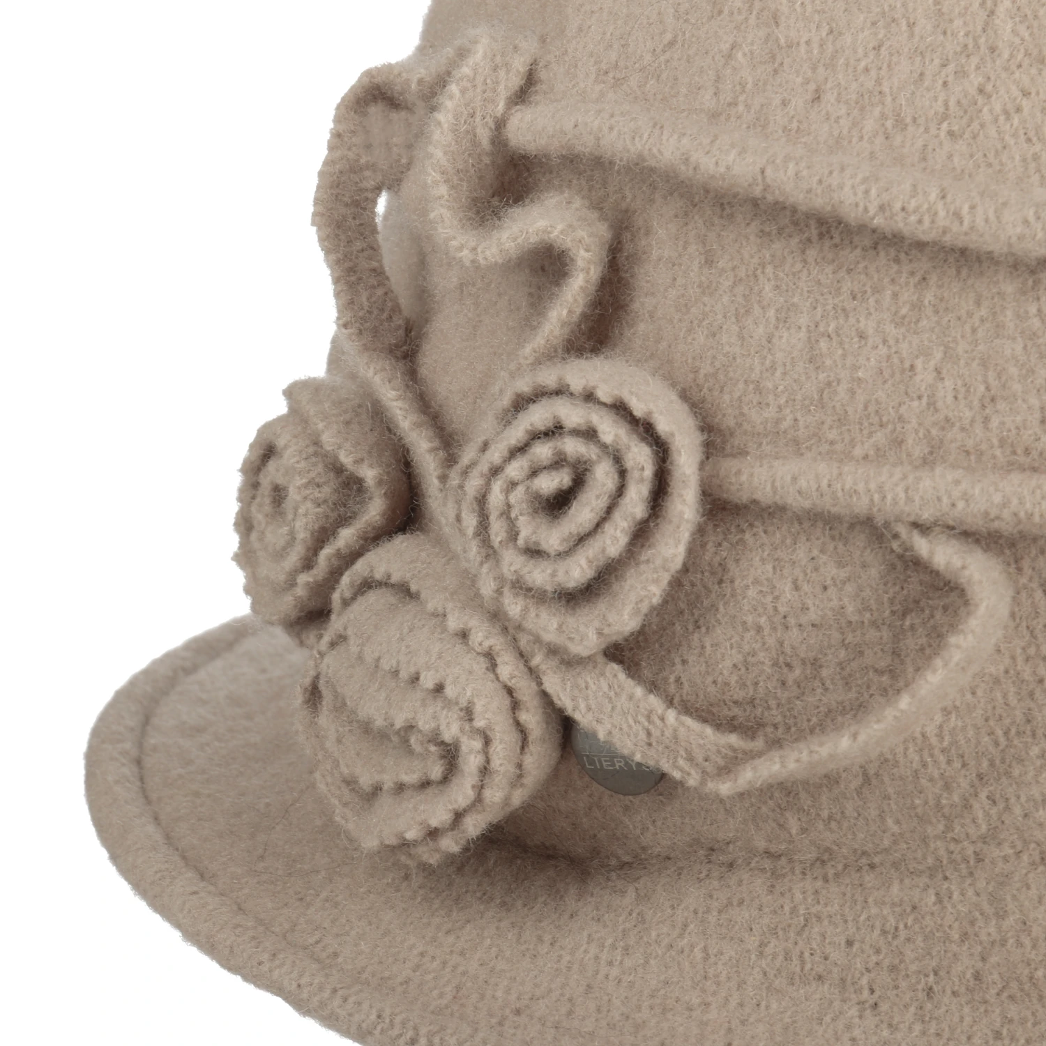 Dekorative Biesen und drei wie Rosen geformte Blüten prägen den bezaubernden Look der stilvollen Kopfbedeckung. Durch die mit Liebe zum Detail gestalteten Zierelemente wird der Hut in Glockenform zum Blickfang jedes Outfits. Die eingefasste Krempe rundet das edle Design ab.