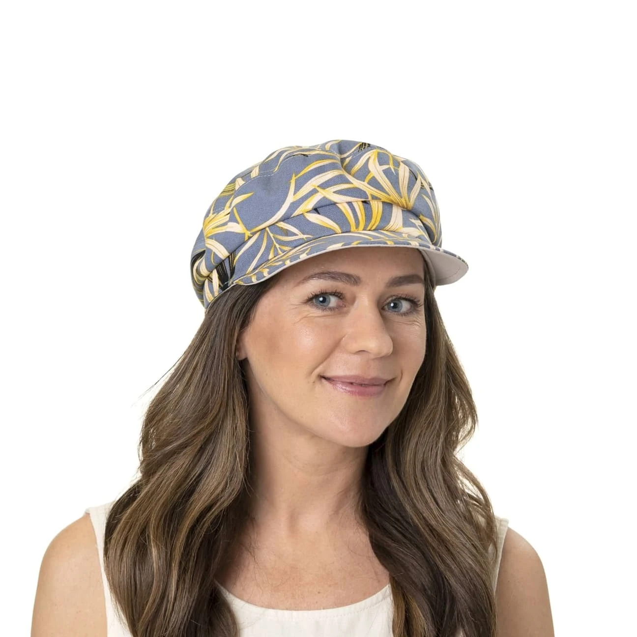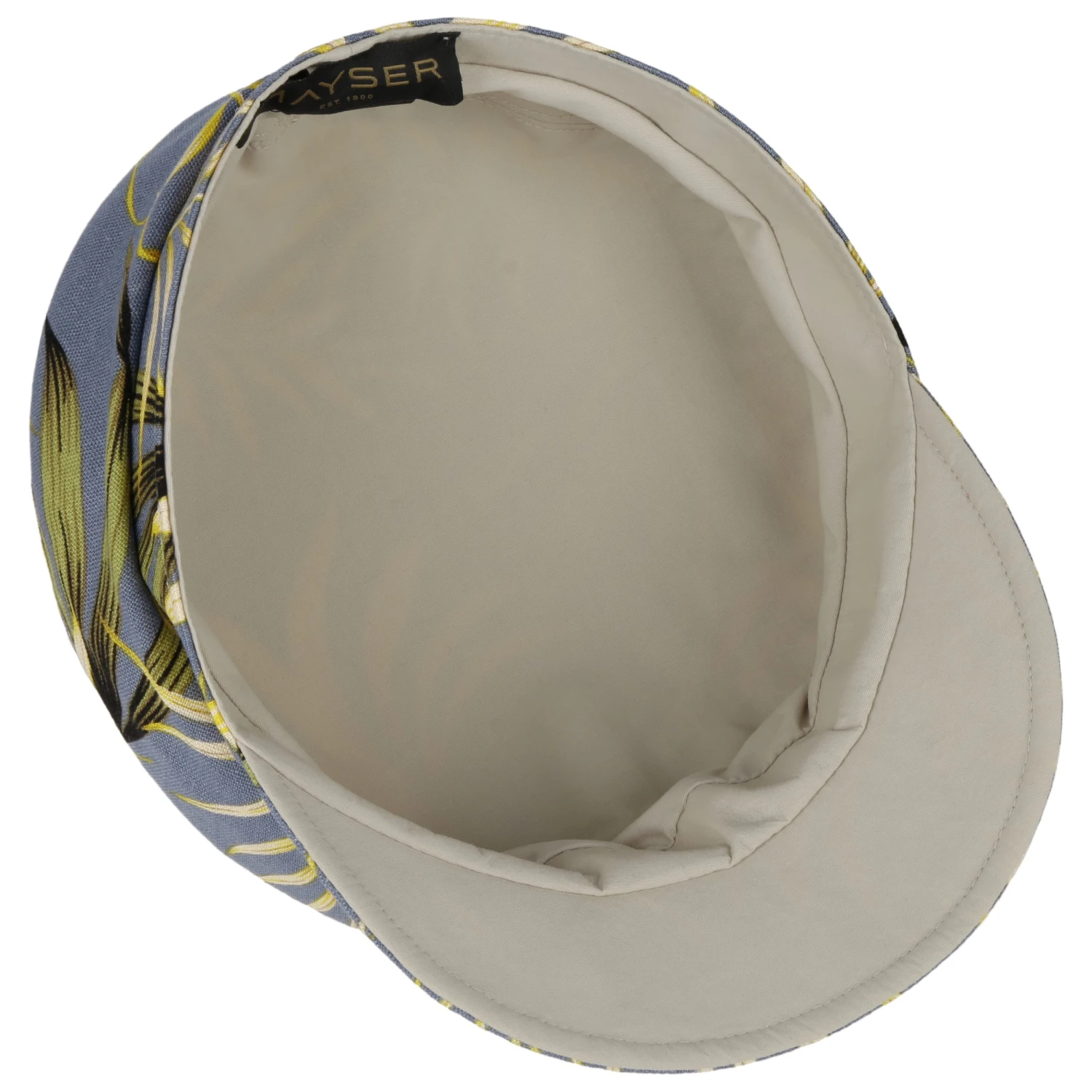Die Materialmischung aus Viskose und Leinen wartet mit klimaregulierenden Eigenschaften auf, ein integrierter UV-Schutzfaktor 80, geprüft nach UV STANDARD 801, bewahrt den Kopf vor Sonnenbrand. Mit ihrem feschen Blättermuster weiß die Kapitänsmütze auch bei Ausflügen ins Binnenland zu gefallen.