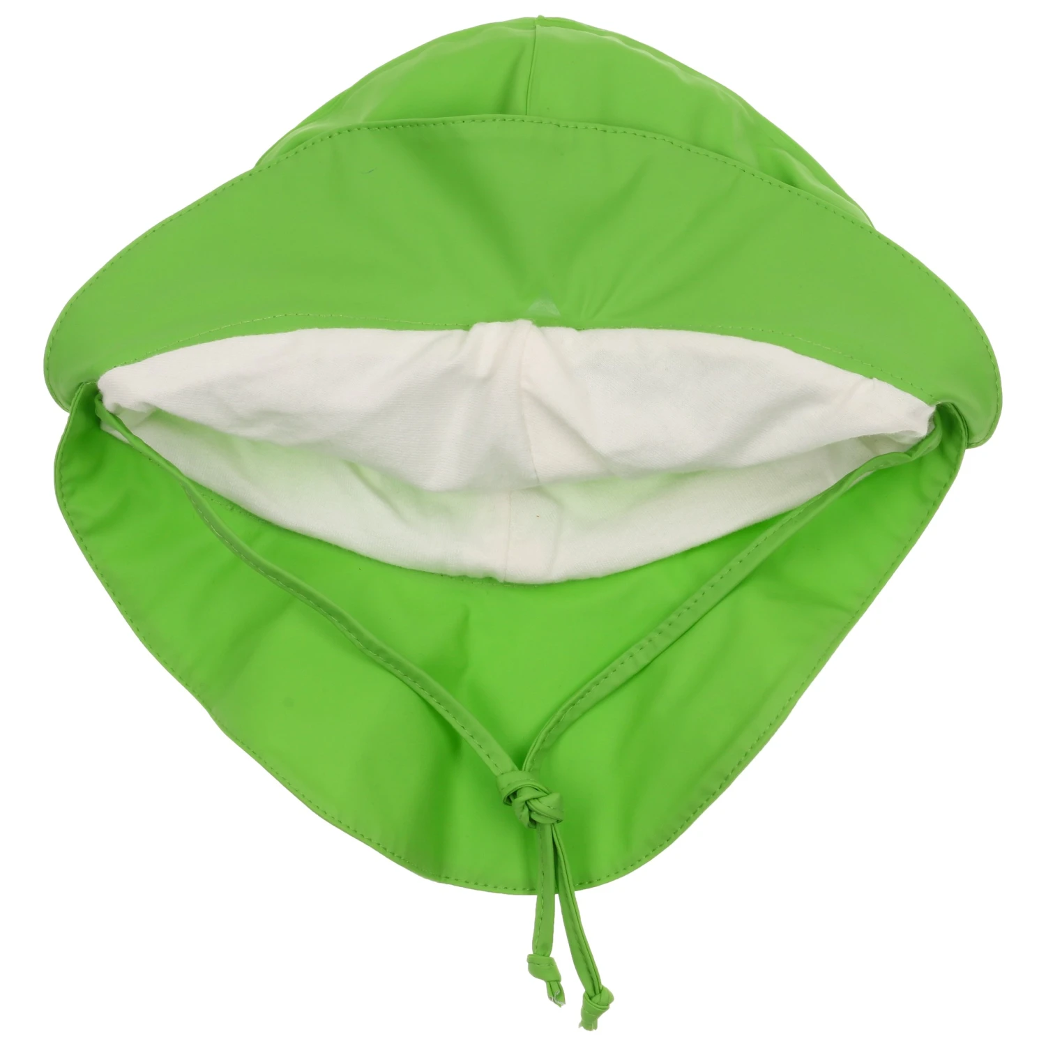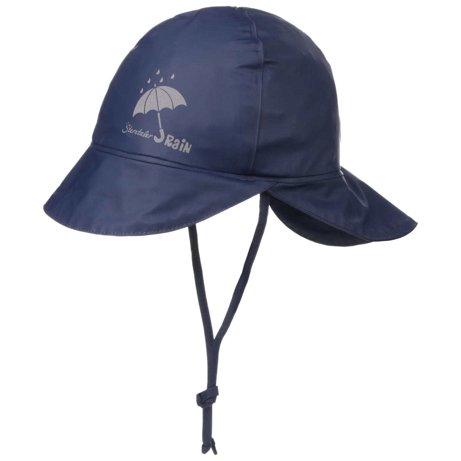 Der gummierte Schlapphut hat eine verlängerte Krempe im Nacken, sodass kein Wasser in den Jackenkragen laufen kann.