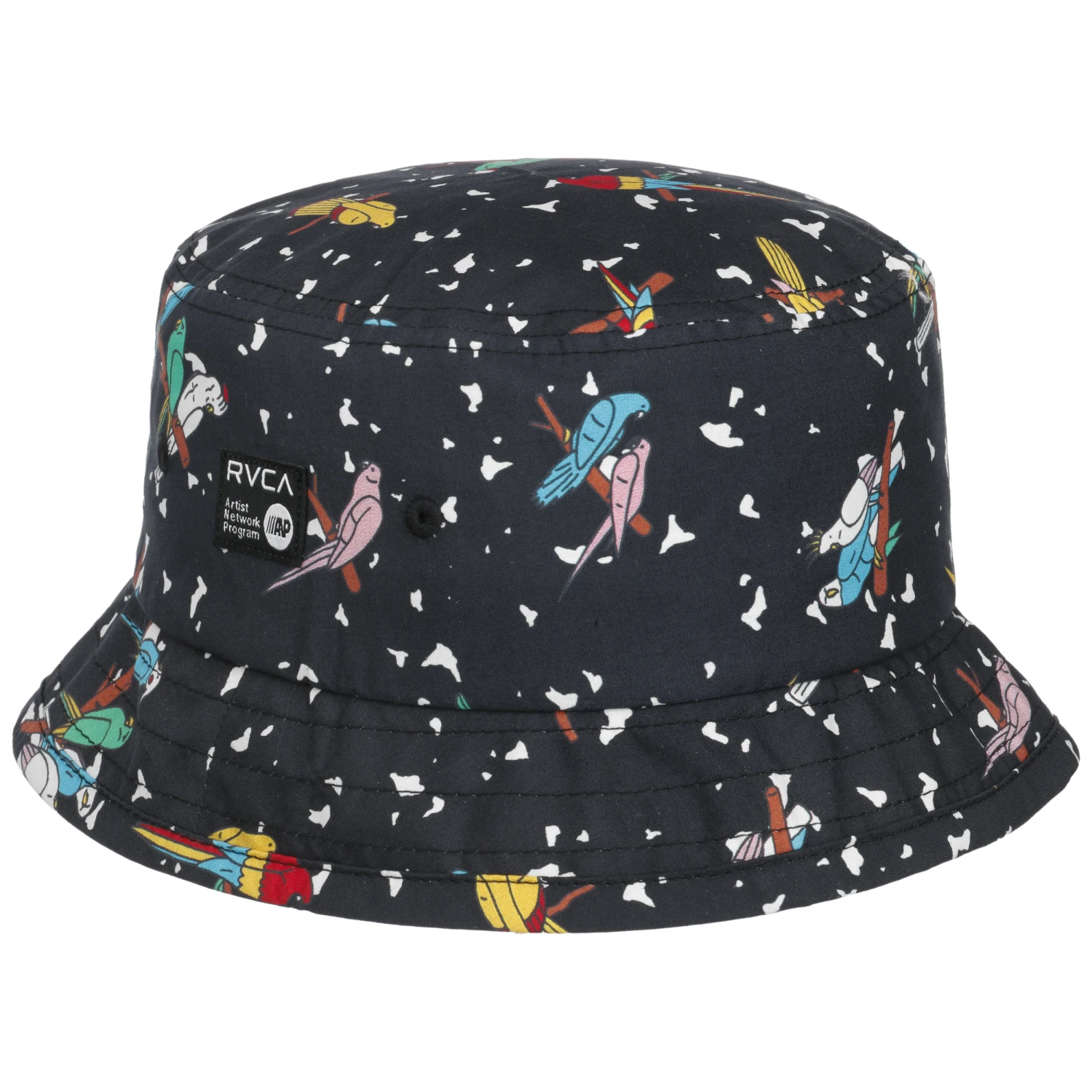 Dieses Exemplar mit dem farbenfrohen Papageienprint passt viel besser auf die verstrubbelte Haarpracht von Sport- und Strandbegeisterten. Kein Wunder, schließlich hat Hersteller RVCA das Design eigens von den Künstlern Luc Pelletier und Kristen Liu Wong gestalten lassen.