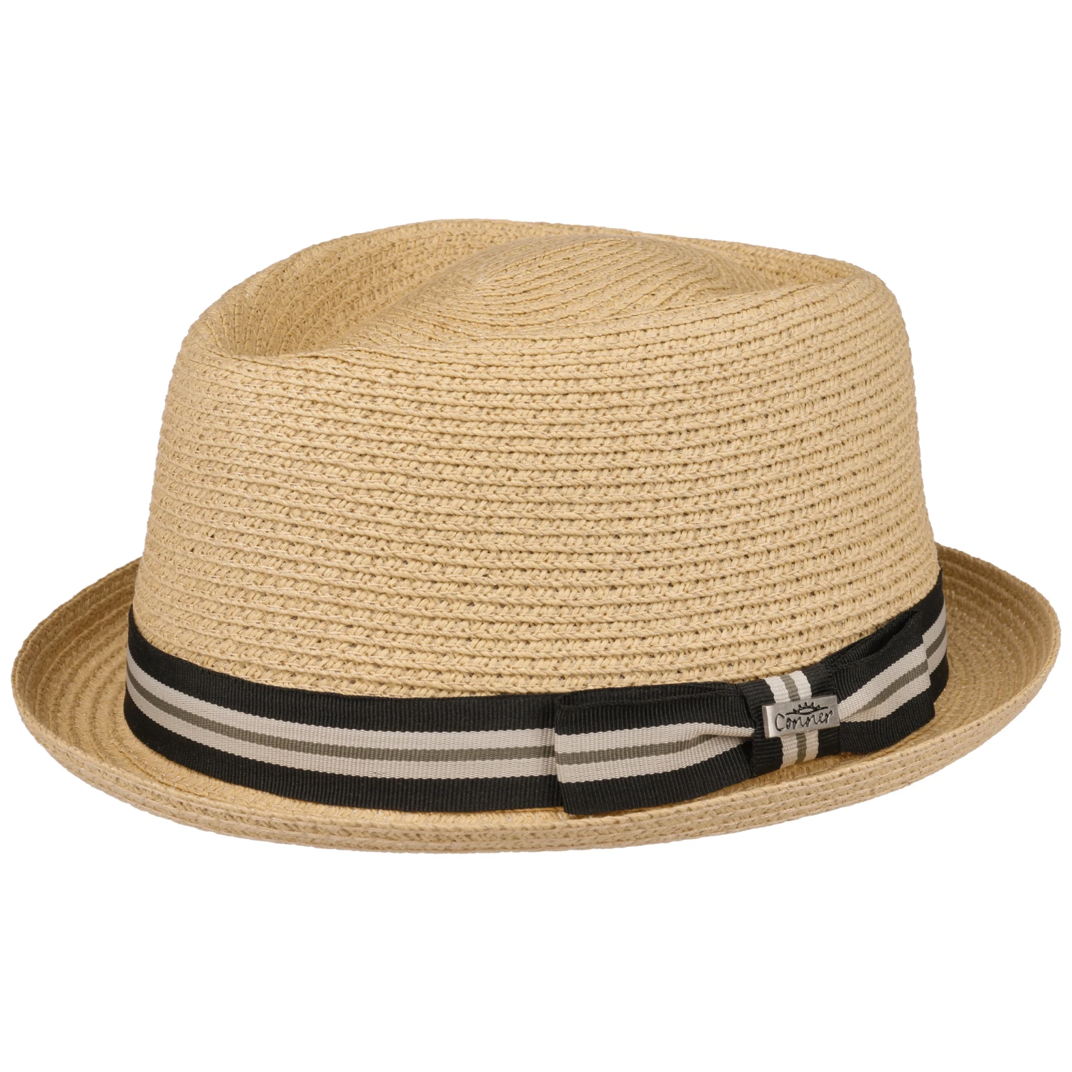 Die feinen Borten aus flexiblem Papierstroh werden von einer sportiv gestreiften Ripsbandgarnitur mit seitlicher Schleife umschlungen, die dem trendigen Herrenhut einen beliebten Casual-Look verpasst. Ob zum Cluboutfit, zu Jeans und Shirt in der Freizeit oder zum legeren Sommeranzug – der knautschbare Strohhut macht zu jeder Garderobe eine tolle Figur.