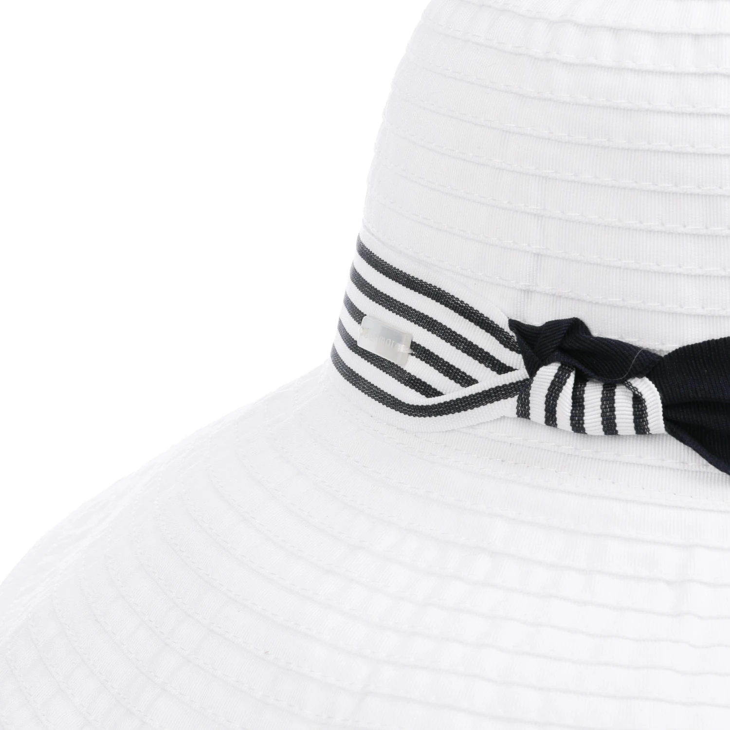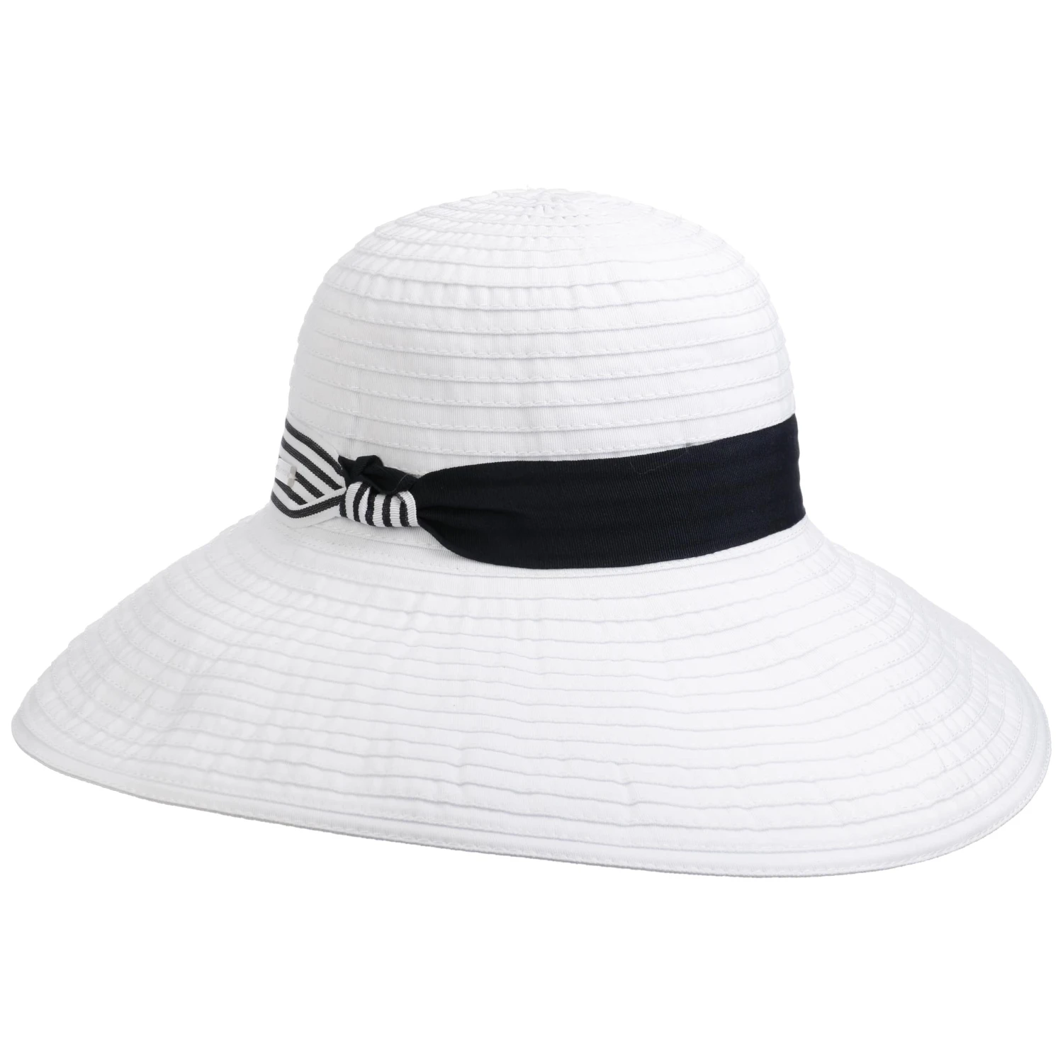 Der maritime Look des zweifarbigen Sonnenhuts weckt Erinnerungen an wolkenlosen Himmel und Meeresrauschen. An einem heißen Sommertag sorgt die breite Krempe für angenehmen Schatten. Auch vor UV-Strahlung schützt der luftige Hut von Betmar mit Faktor 50+. Unterwegs darf das knautschfeste Material einfach zusammengerollt und im Koffer verstaut werden.