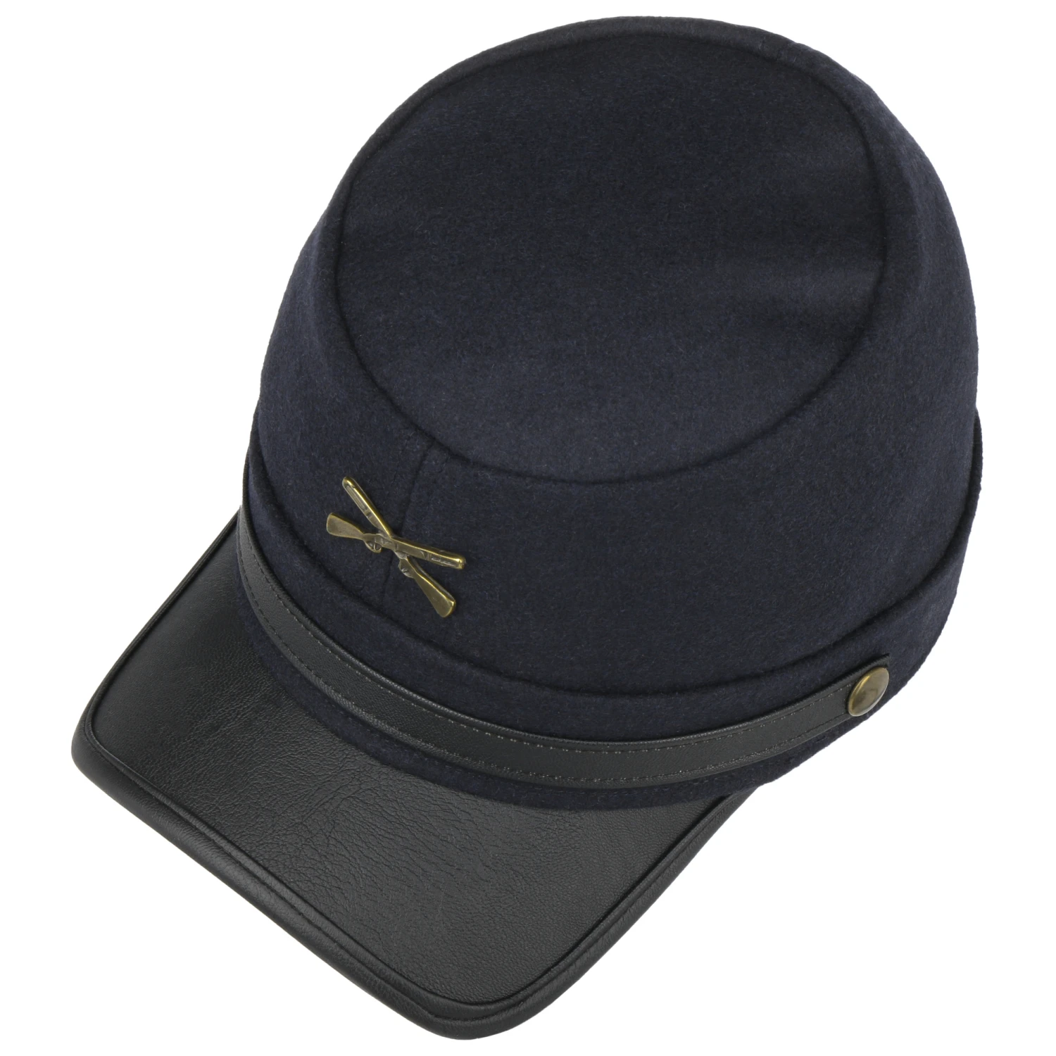 Wer gewinnt? Mit dieser Cap haben Sie es selbst in der Hand! Die orginale dunkelblaue Fassung mit gekreuzten Gewehren über dem Garniturband bringt historischen Charme auf jede Kostümparty.