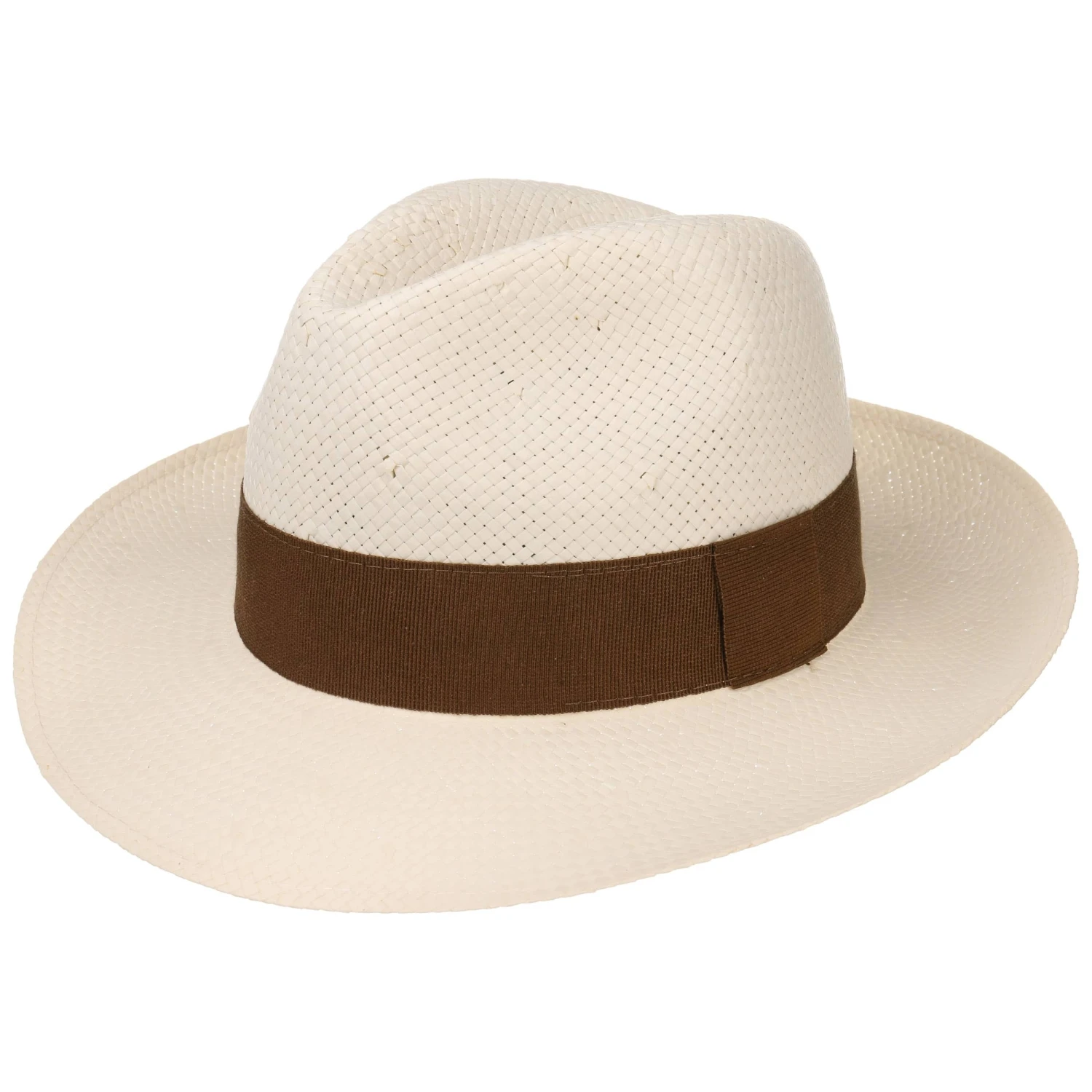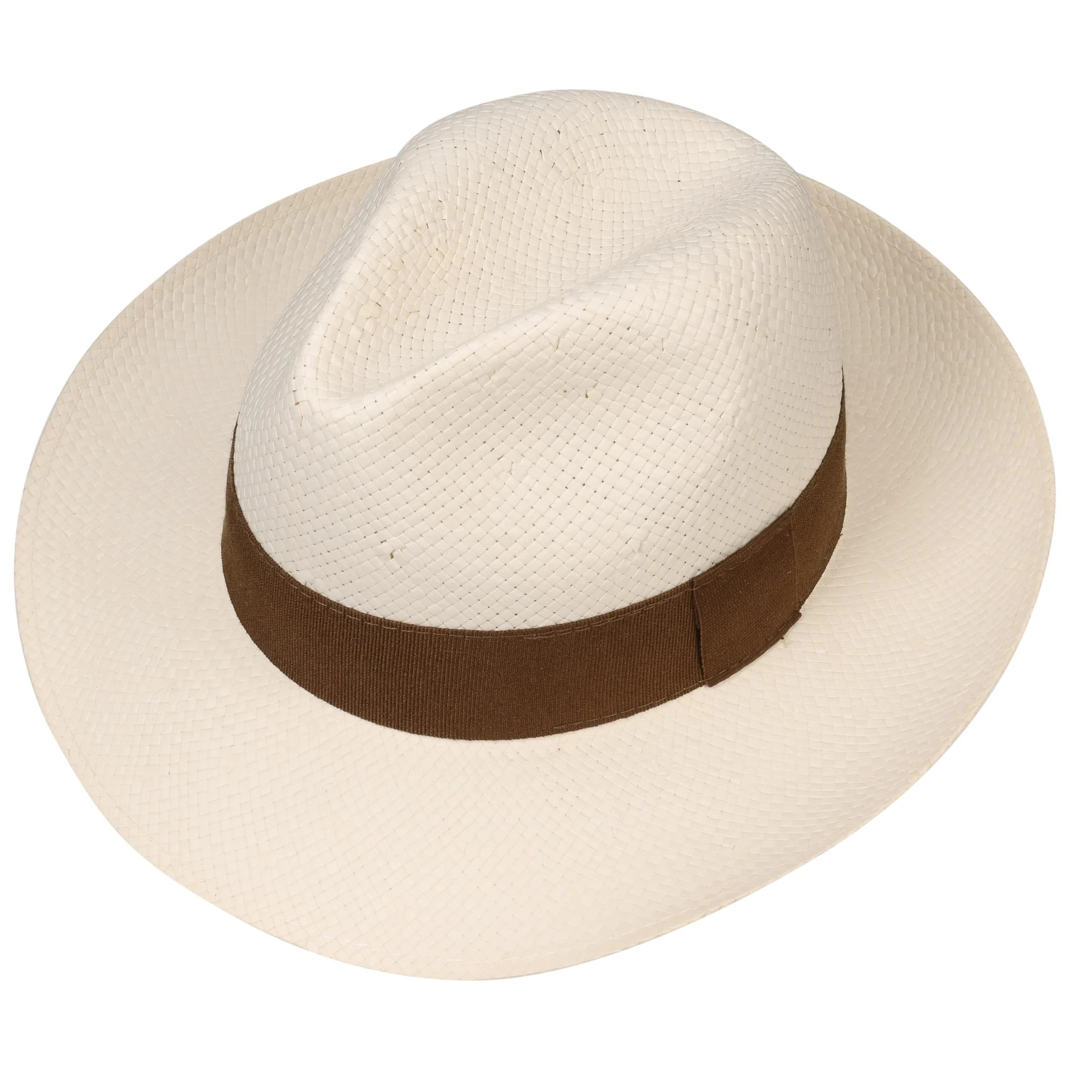 Die klassische Ripsbandgarnitur in natürlicher Farbgebung unterstreicht das sonnige Gemüt, das der breitkrempige Herrenhut an den Tag legt. Knautschweich, ultraleicht und mit vornehm eingedellter Krone ist der in Italien hergestellte Fedora die optimale Kopfbedeckung für einen sonnig warmen Sommer, in dem bestes Aussehen ganz hoch im Kurs steht.