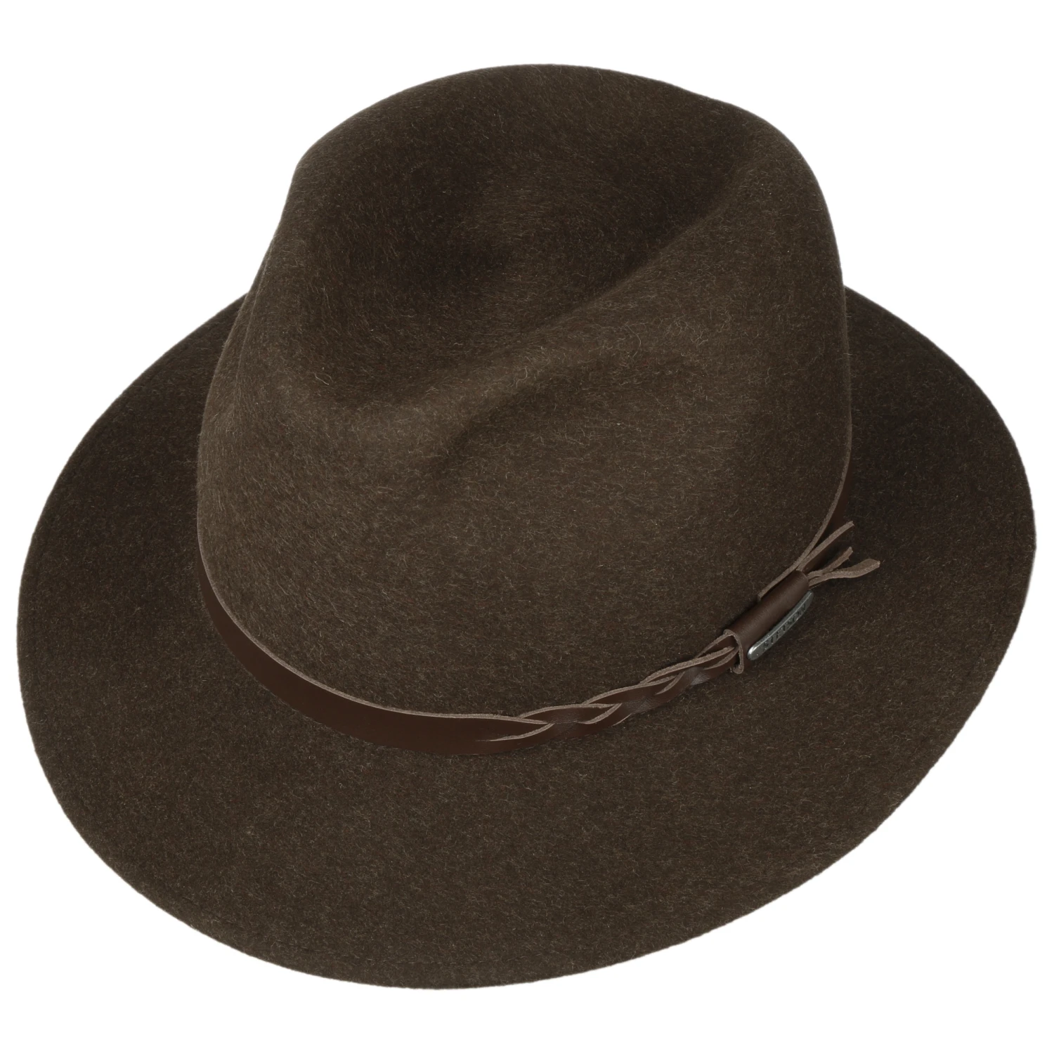 Unabhängig von seiner Bezeichnung überzeugt der aus Wolle gefertigte knautschbare Filzhut in meliertem Look, mit teils geflochtener Ledergarnitur und wasserabweisenden Eigenschaften durch seinen besonderen rustikalen Charme, der sich von einem Regenschauer unterwegs kaum beeindrucken lässt.