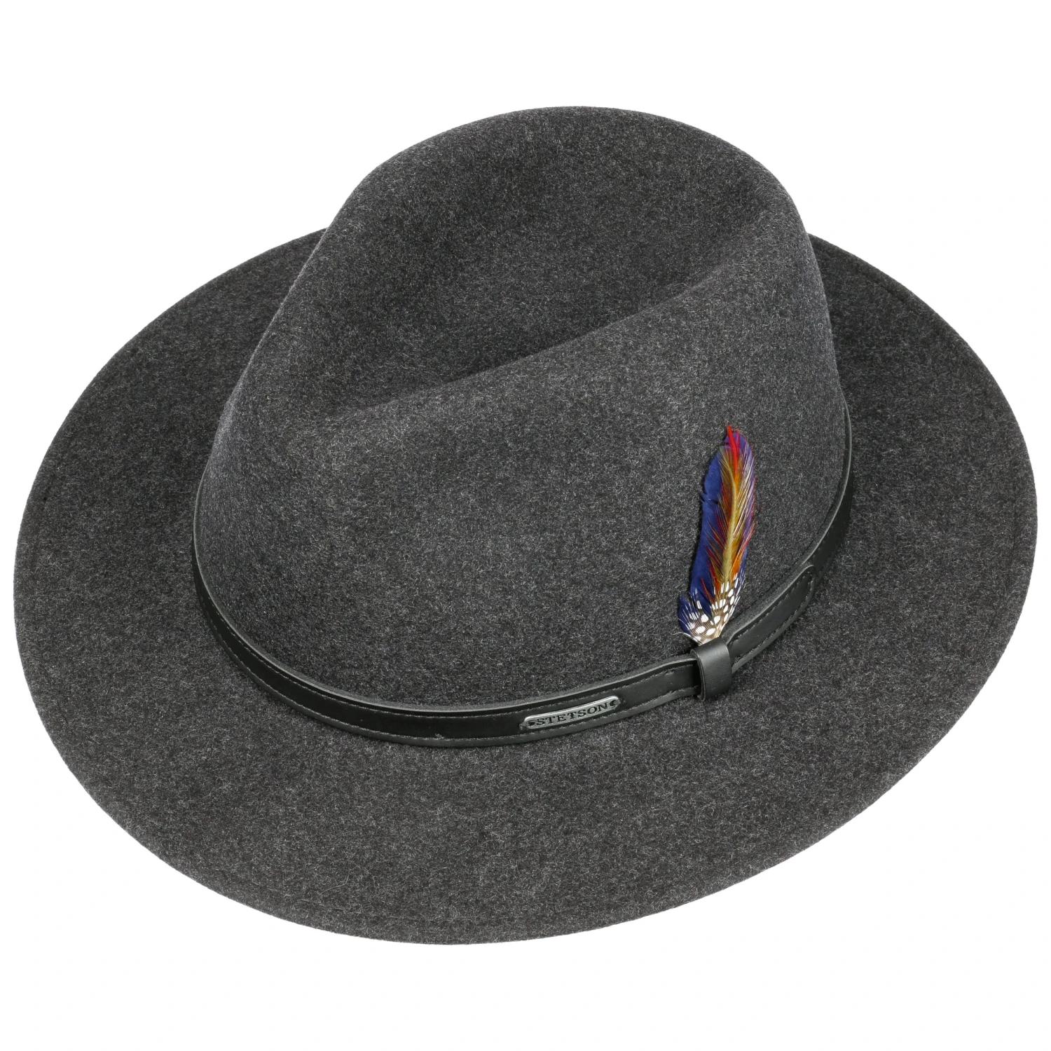 Ausdrucksstark kommt der Traveller von Stetson daher, gefertigt aus exklusivem Wollfilz in Asahi-Guard®-Qualität in leicht meliertem Design.
