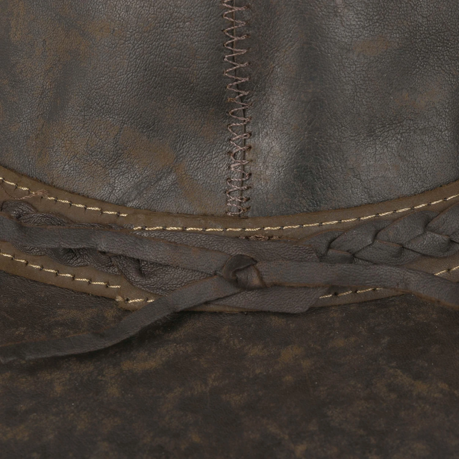 Falten Sie den flachköpfigen Hut aus authentischem Känguruleder ruhig taschenfertig zusammen, er verträgt das! Die Verarbeitung enspricht australischen Tierschutzrichtlinien und ist mit komfortbablem Stretchinnenband ausgestattet.