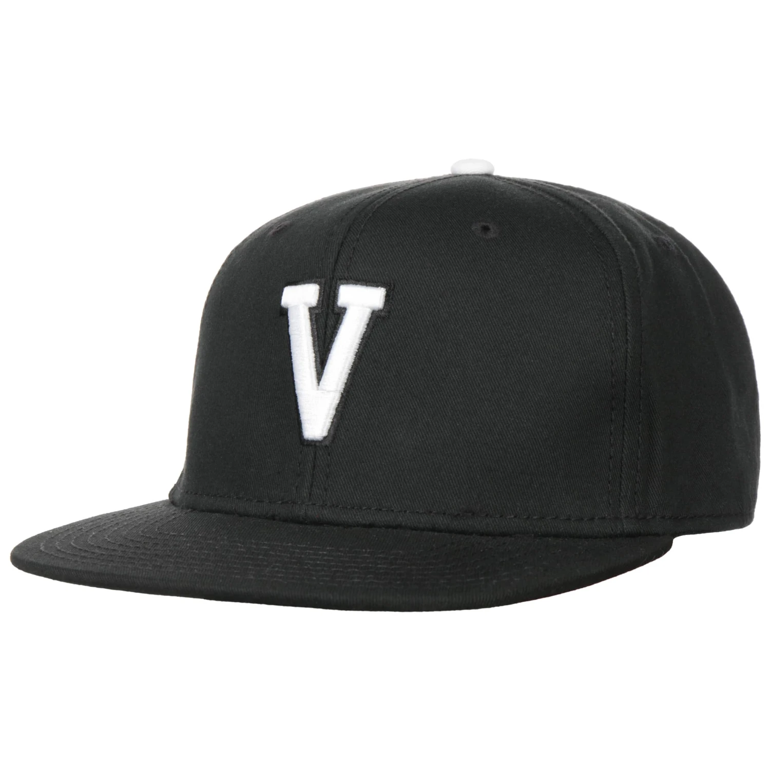 Die sechsteilige Flatbrim Cap kommt mit einer verstärkten Front, dem typischen geraden Schirm und einem hochwertigen Stitching des Buchstabens V.