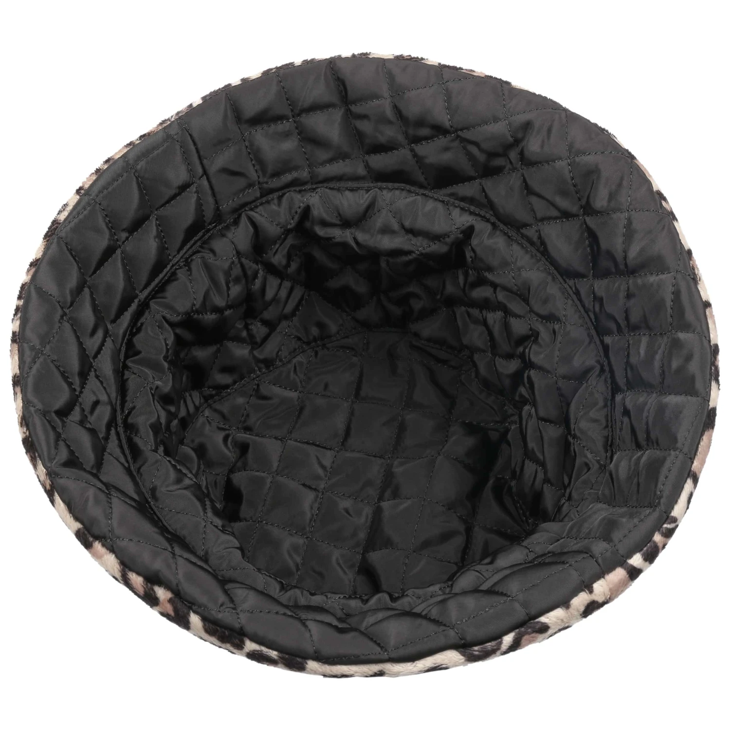 Während die eine Seite einen mehrfarbigen Allover-Animal-Print zeigt, macht die andere Seite mit einem karierten Steppmuster auf sich aufmerksam. Es bedarf nur weniger Handgriffe, um den sorgfältig verarbeiteten Stoffhut zu wenden. Mit der wasserabweisenden Oberfläche erweist sich die Kopfbedeckung auch bei Regenwetter als praktischer Begleiter.